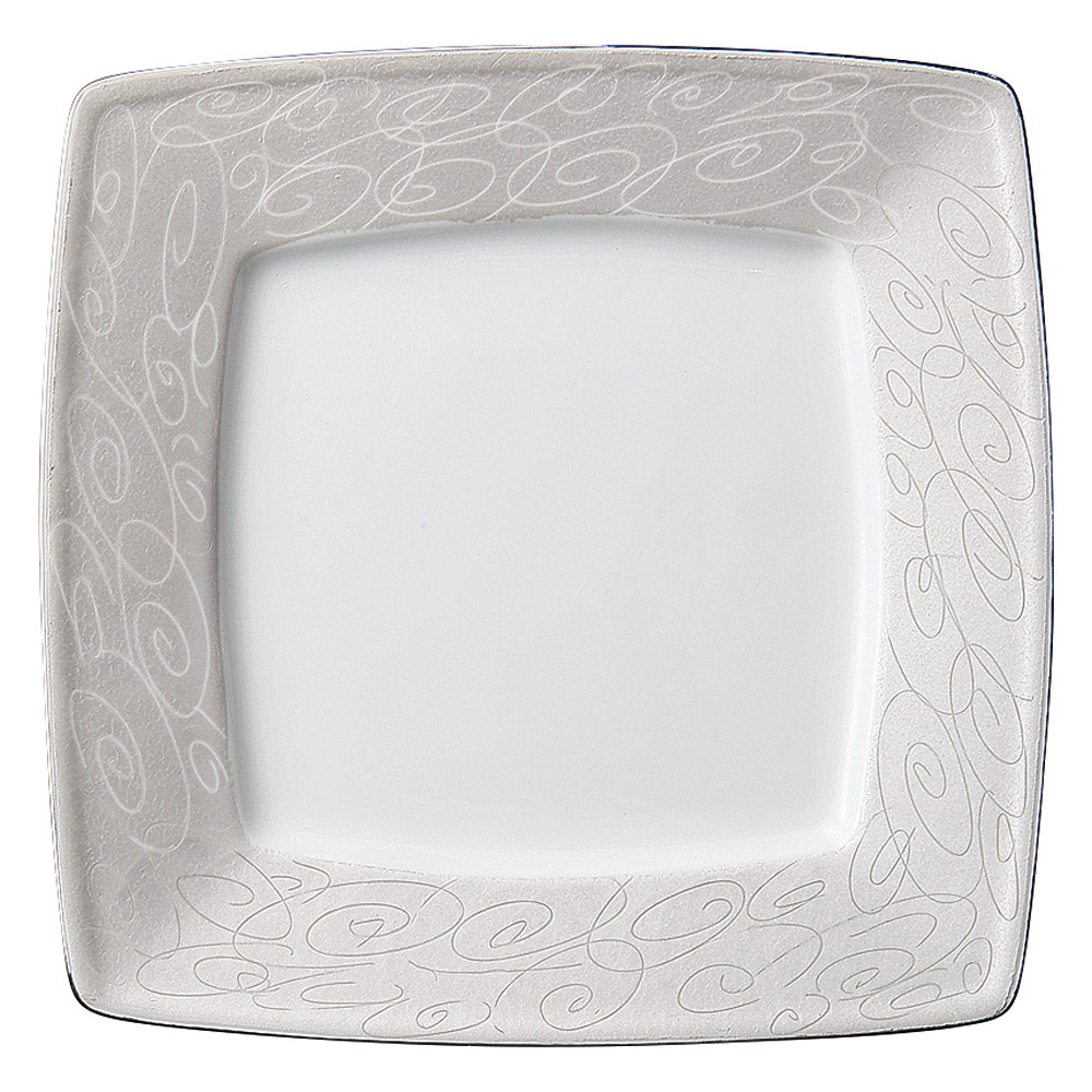 銀彩渦書き落し角皿