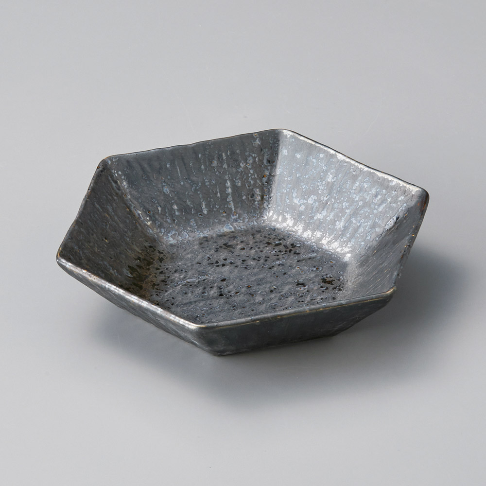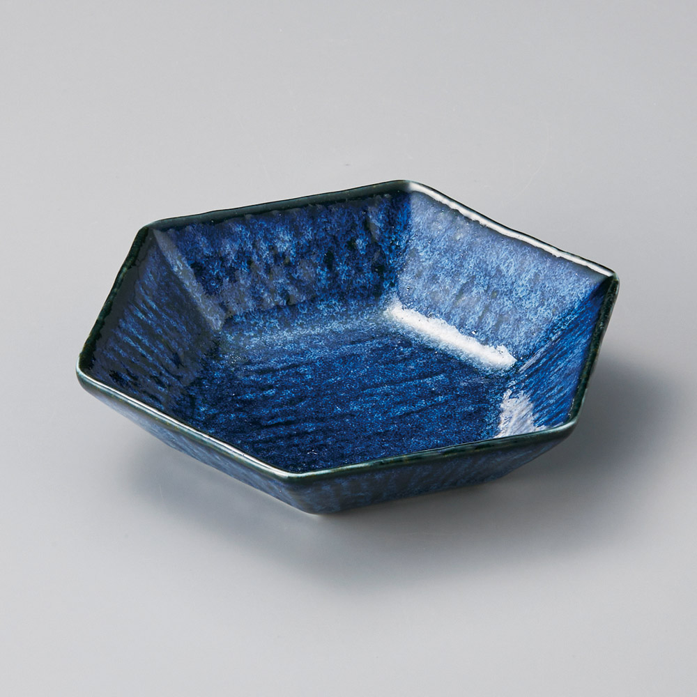 窯変紺六角鉢
