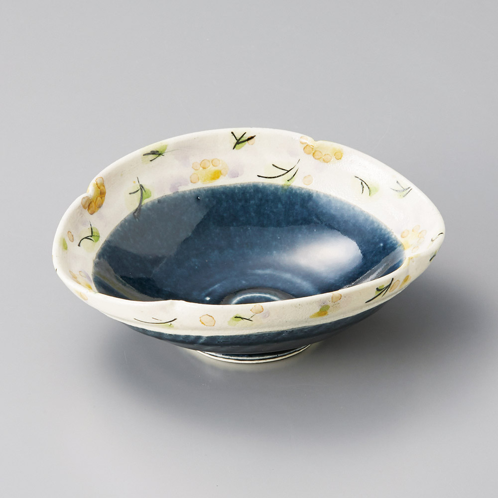 藍釉紫彩花たわみ鉢M