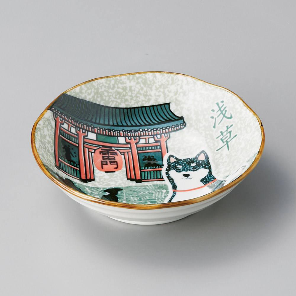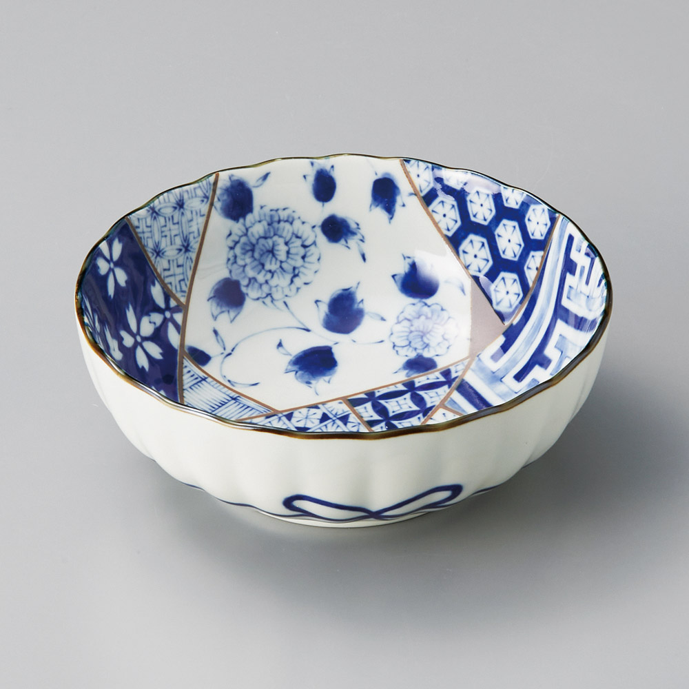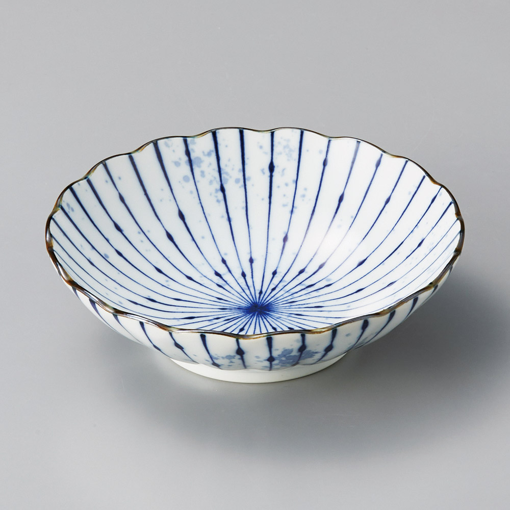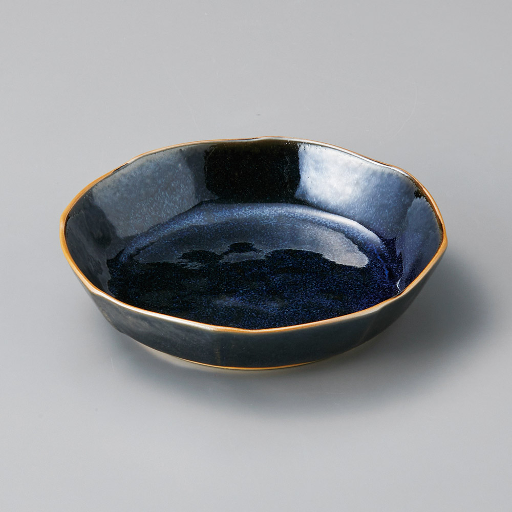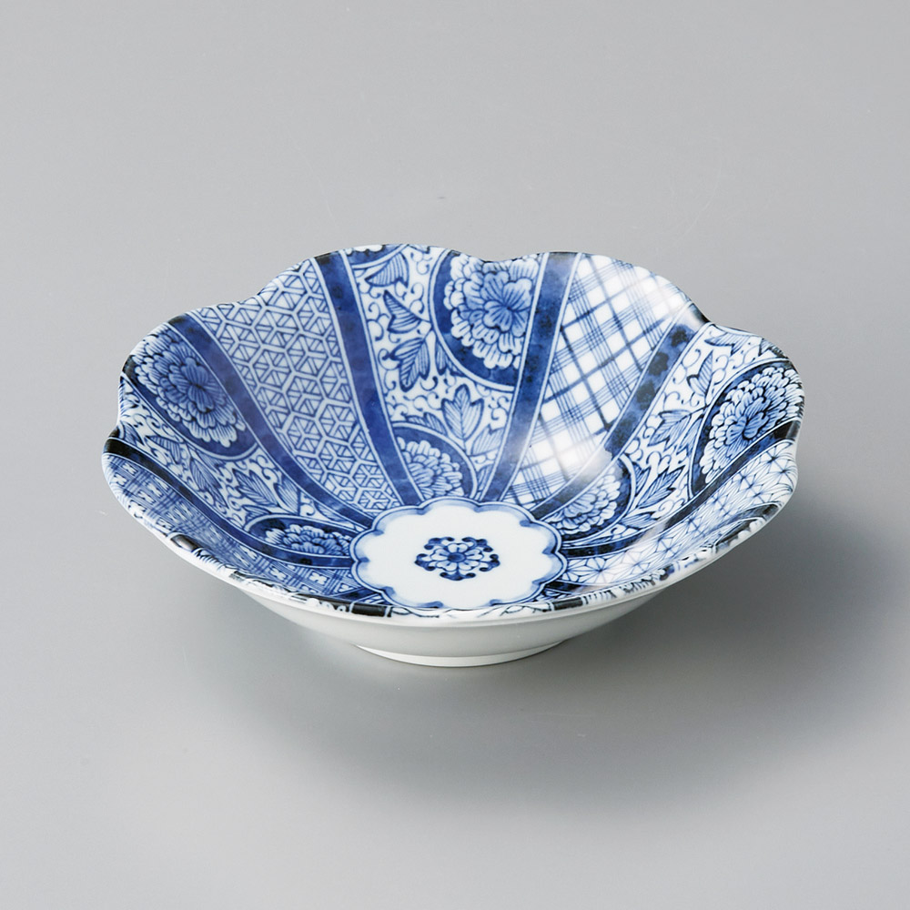 ルリ釉流水ラスター花型多用鉢(有田焼)