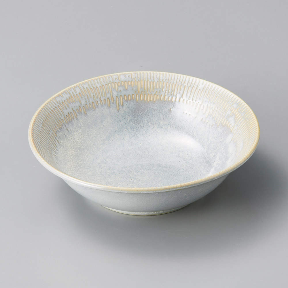 織部淵唐草たわみ中鉢 (土物,手造り)