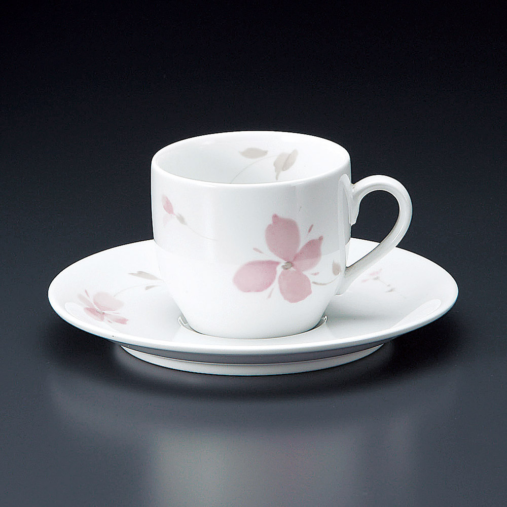ピンクフラワーDCコーヒー碗皿 (強化)