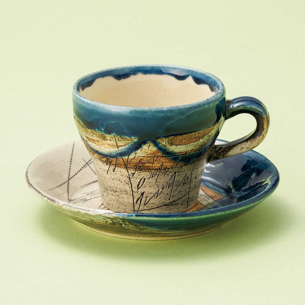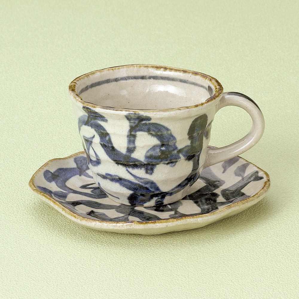 窯変流十草コーヒー碗皿 (土物)
