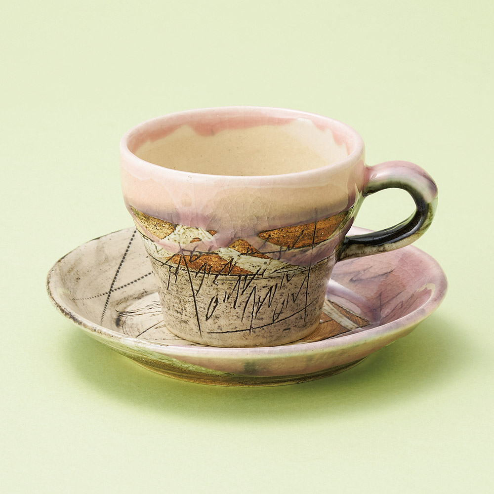 ピンクキネ形コーヒー碗皿