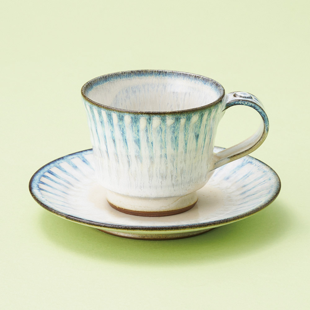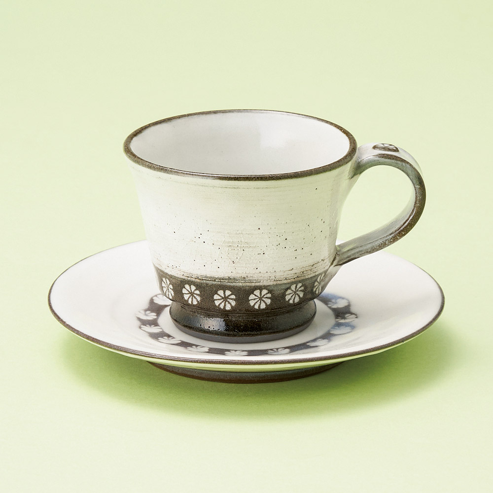 白ぼかし小花コーヒー碗皿(信楽焼)