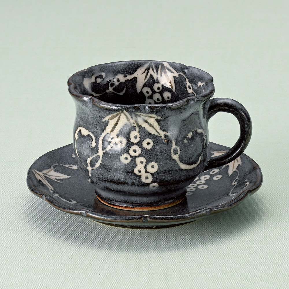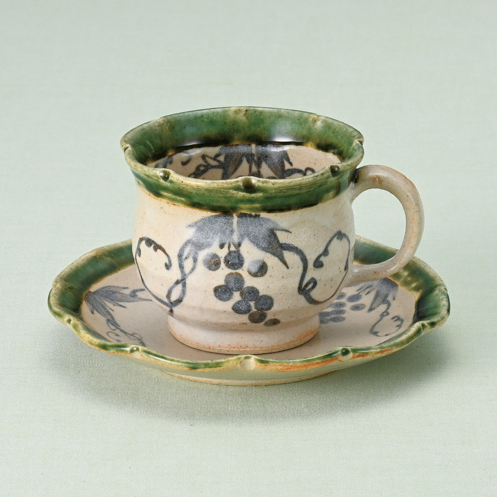 織部葡萄コーヒー碗皿