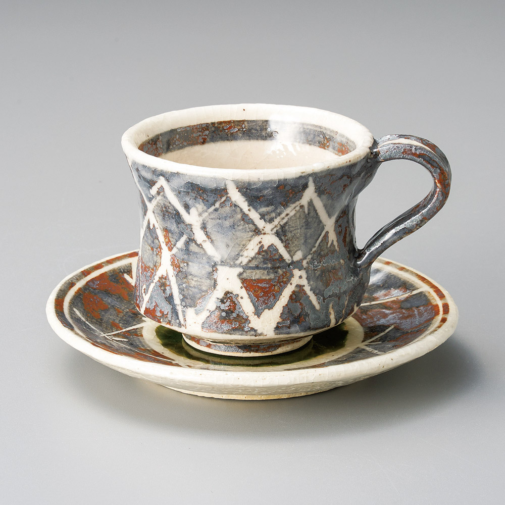 鼠志野格子コーヒー碗皿