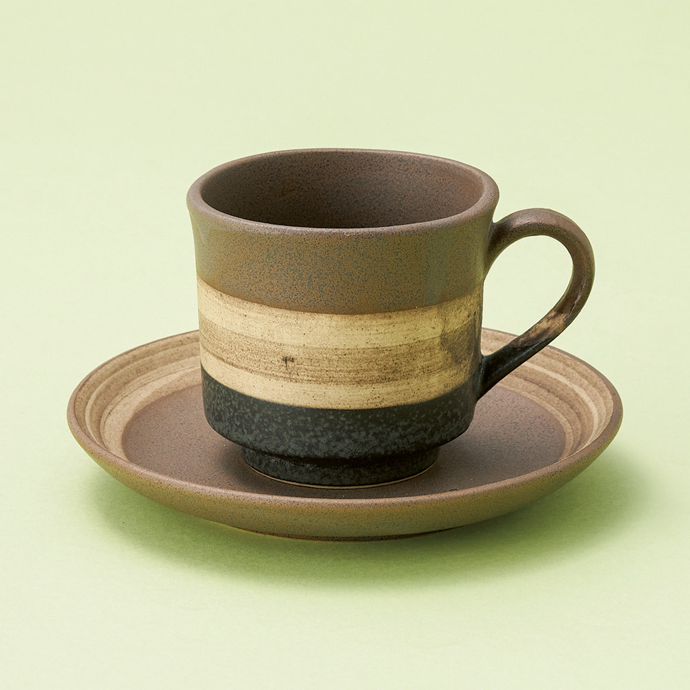 セピアグレーコーヒー碗皿 (土物)