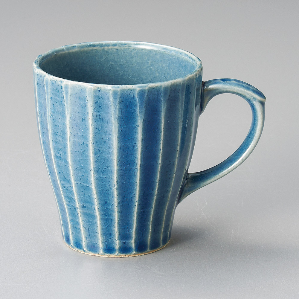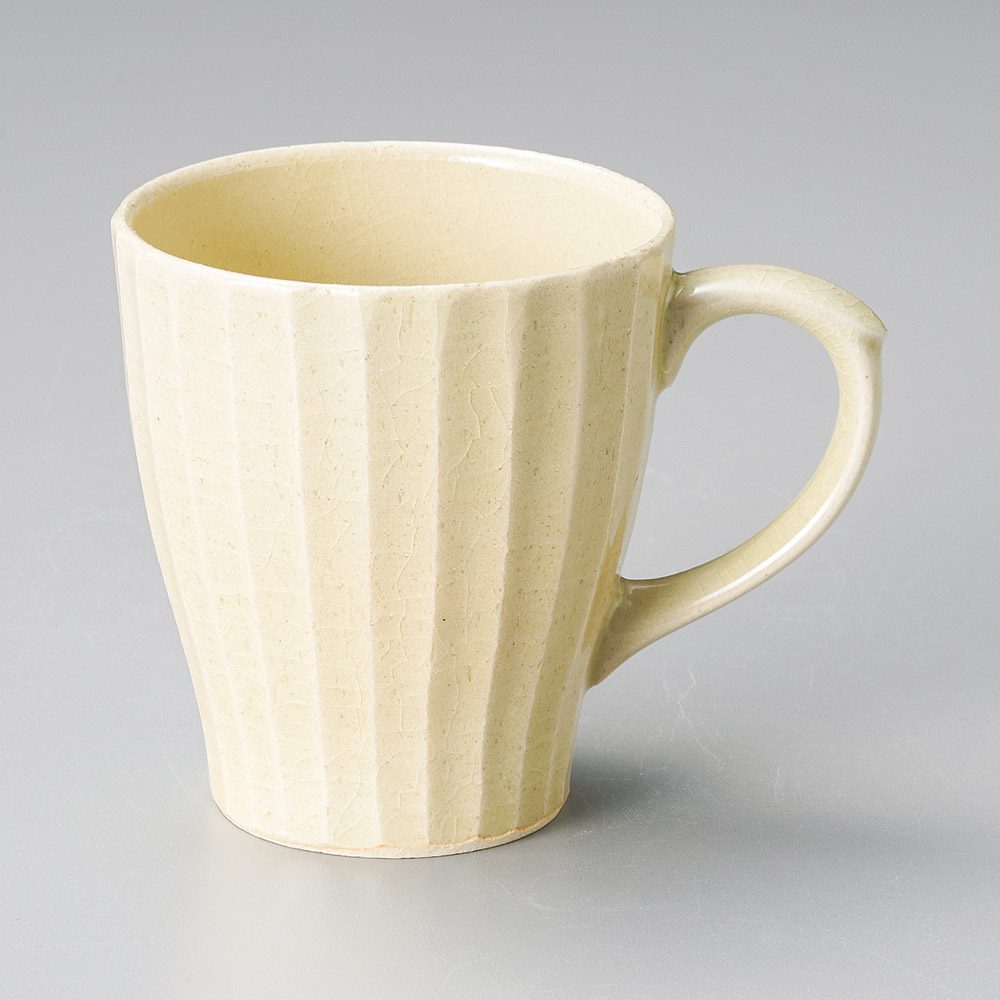 水墨彩白釉ねじり手マグカップ (土物,手造り)