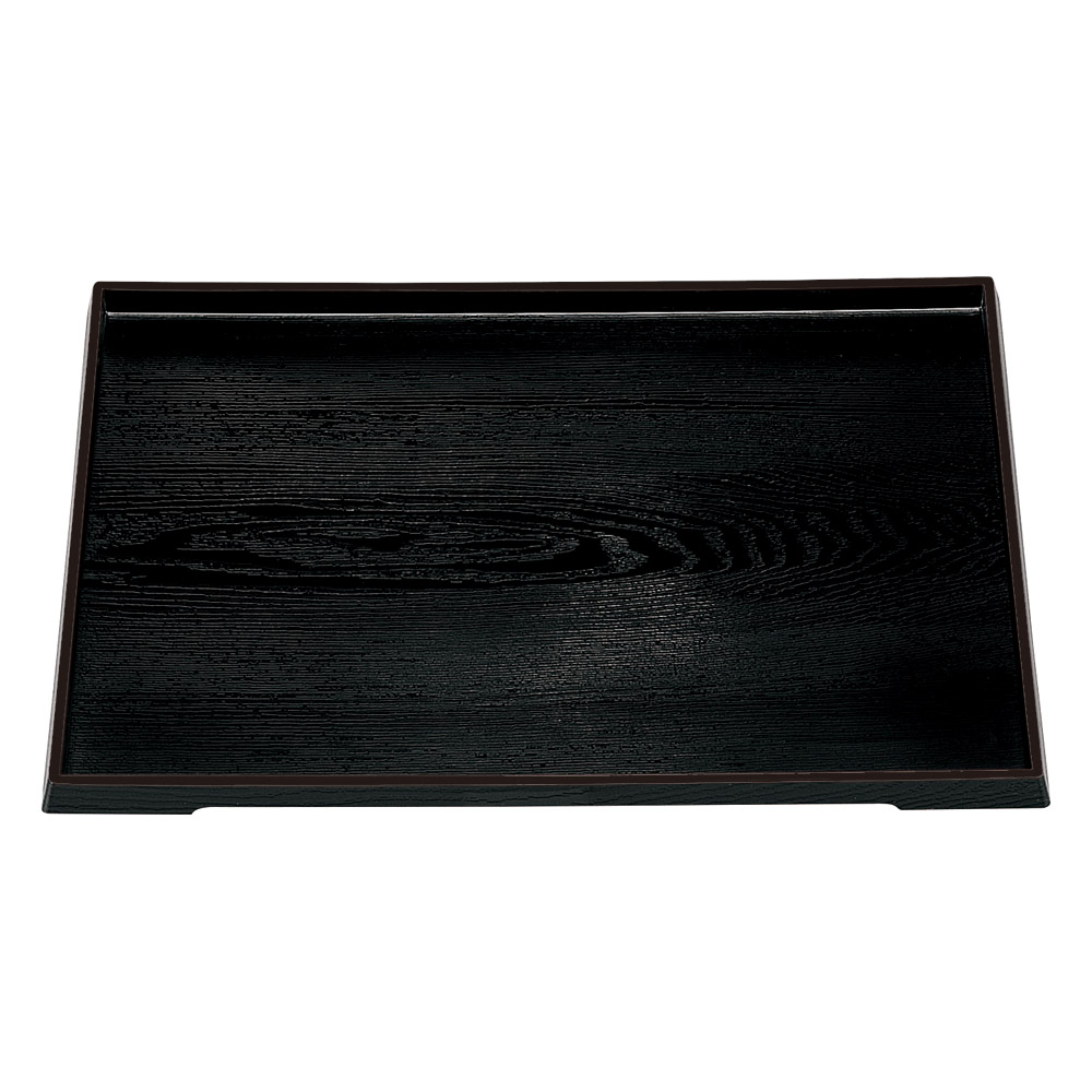 [A]ヘギ目フライト盆 グレイウッド渕黒弱SL(ノンスリップ加工)尺4寸