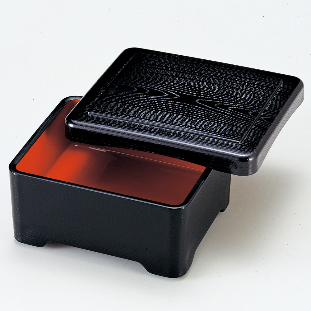 [A]亀甲飯器 溜 内黒塗5人用平付