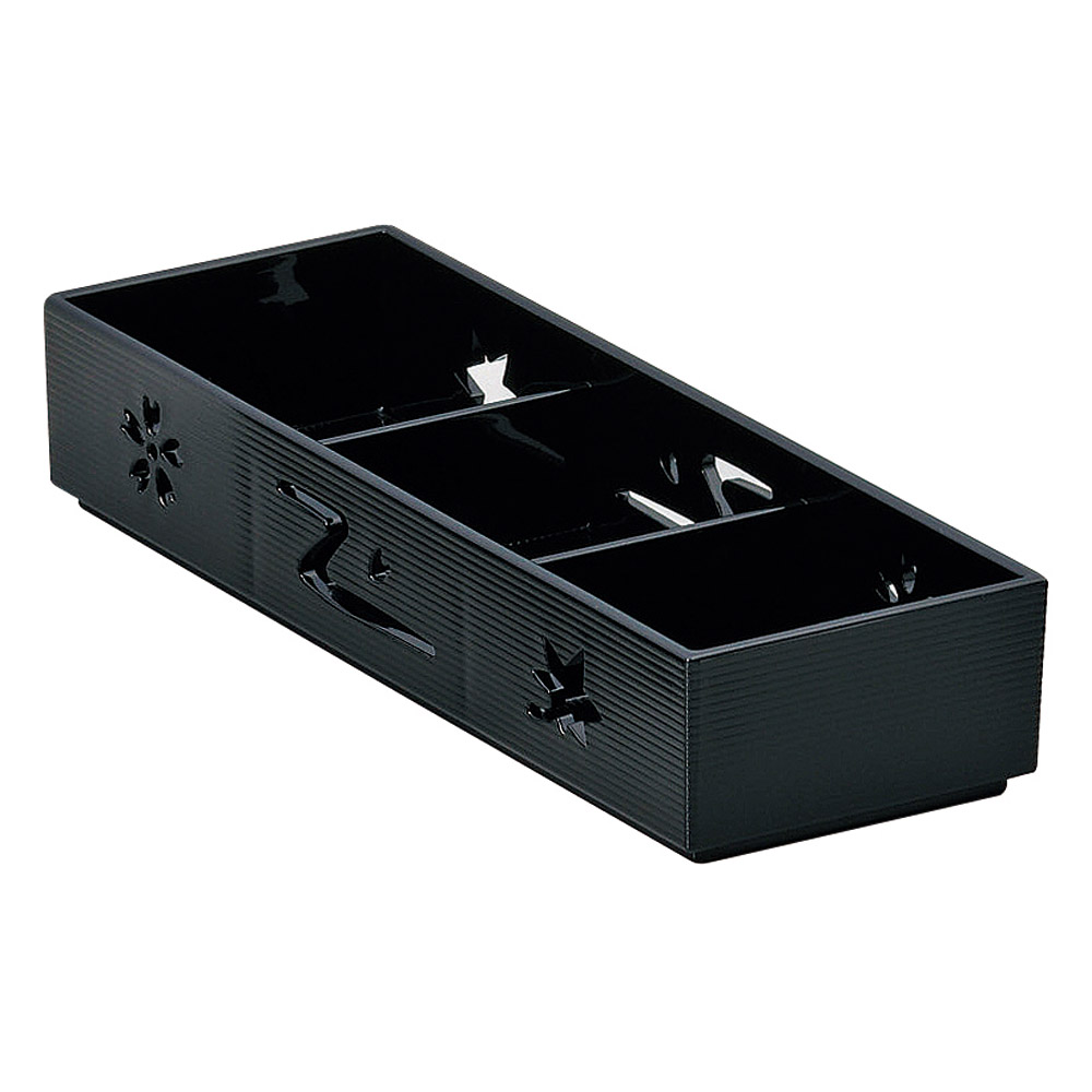 [A]9寸長角透かし盛器 黒内塗(オプション別)