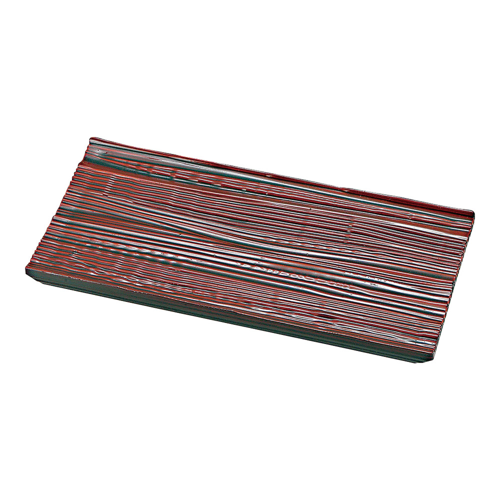 [TA]長角さざ波盛皿 銀パール渕黒30㎝