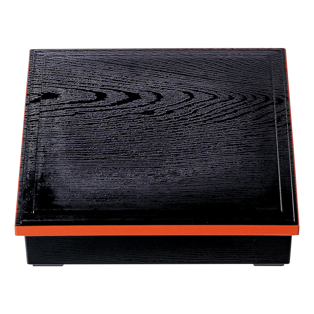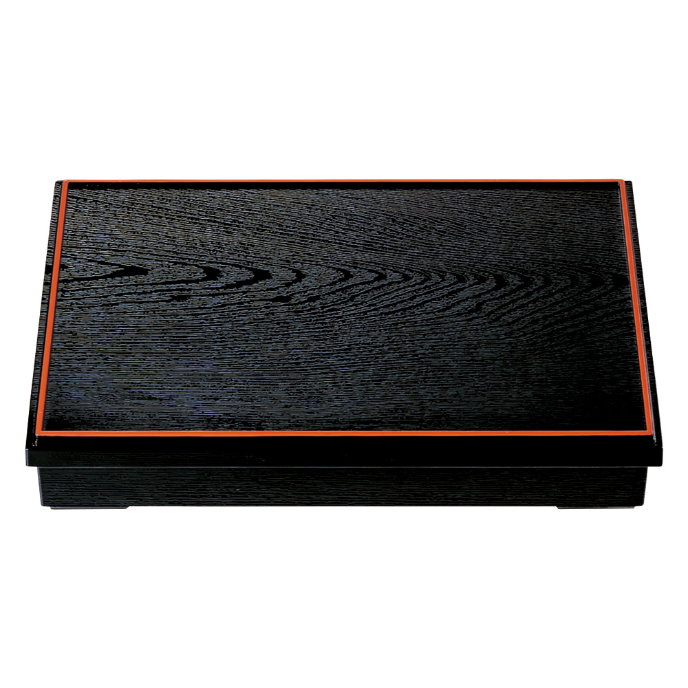 [TA]耐熱8.5寸木目松花堂 黒渕朱内黒塗