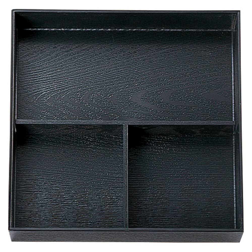 [A]8.5寸木目松花堂 黒内塗無(仕切別)