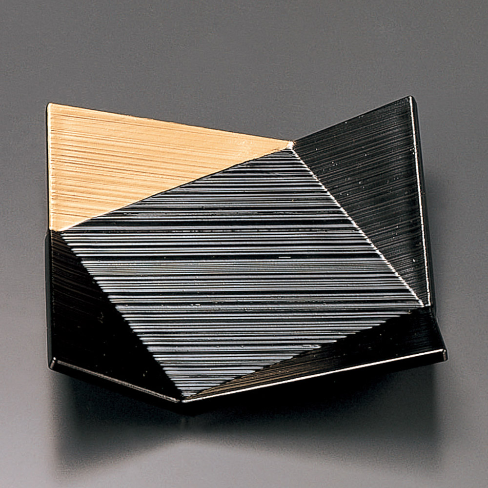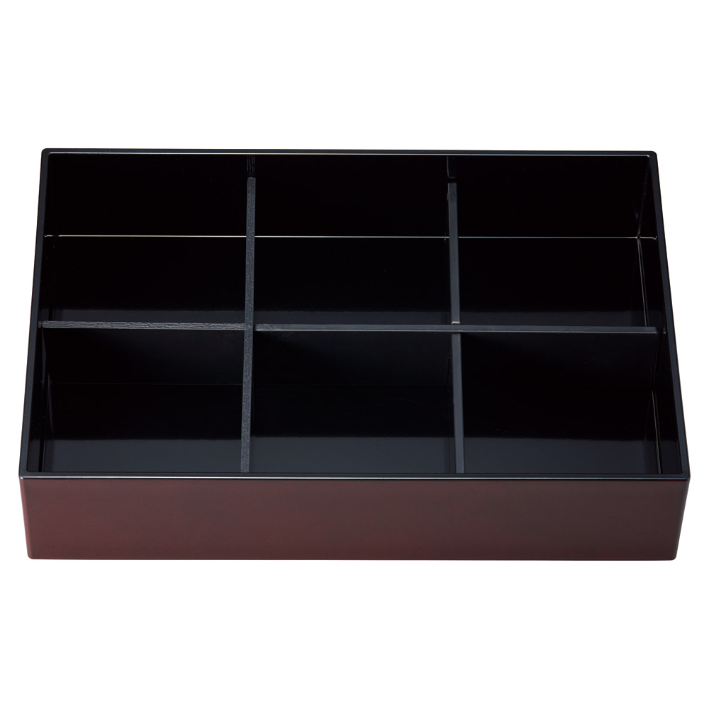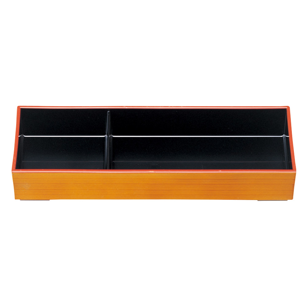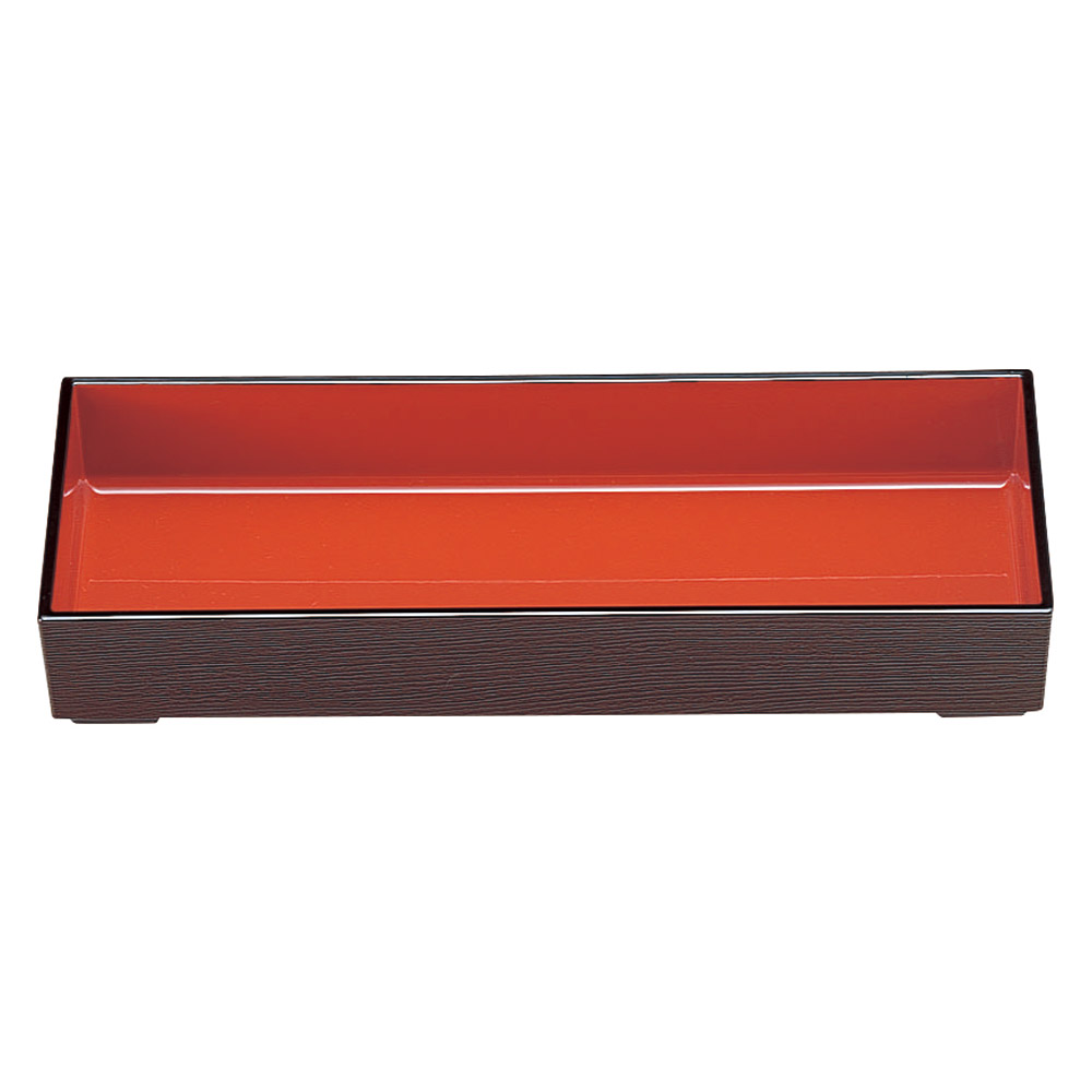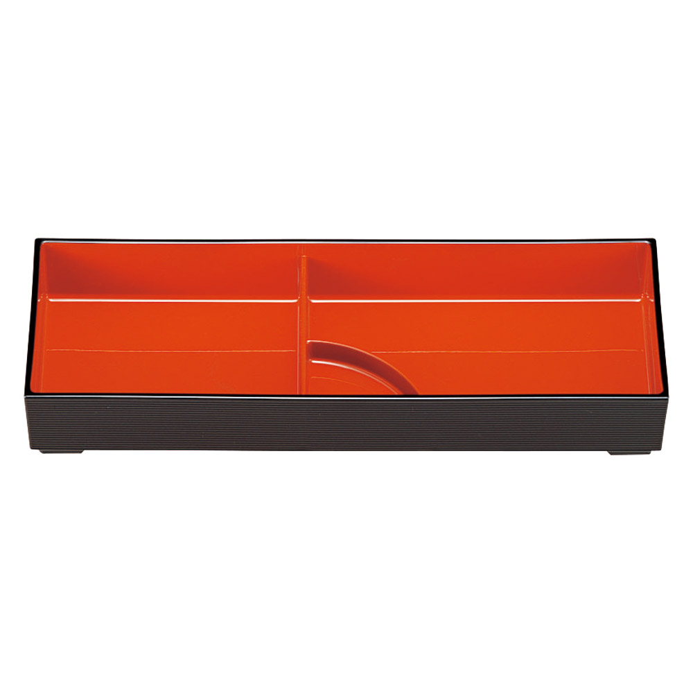 [A]9寸長手松花堂 黒ヘギ目渕朱(仕切別)