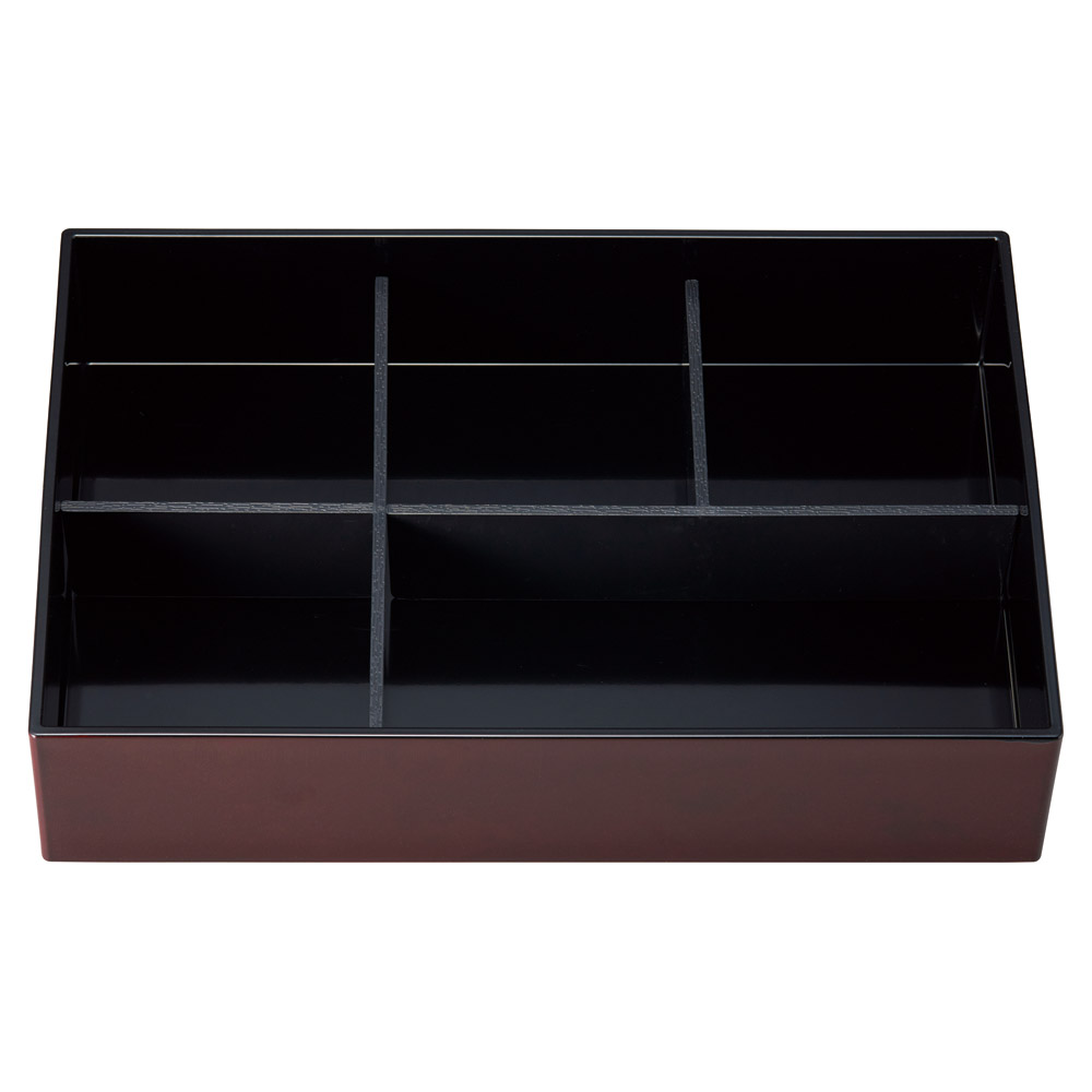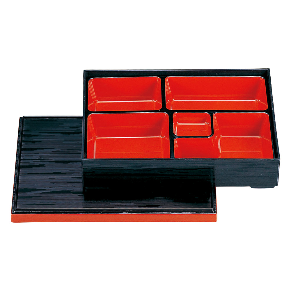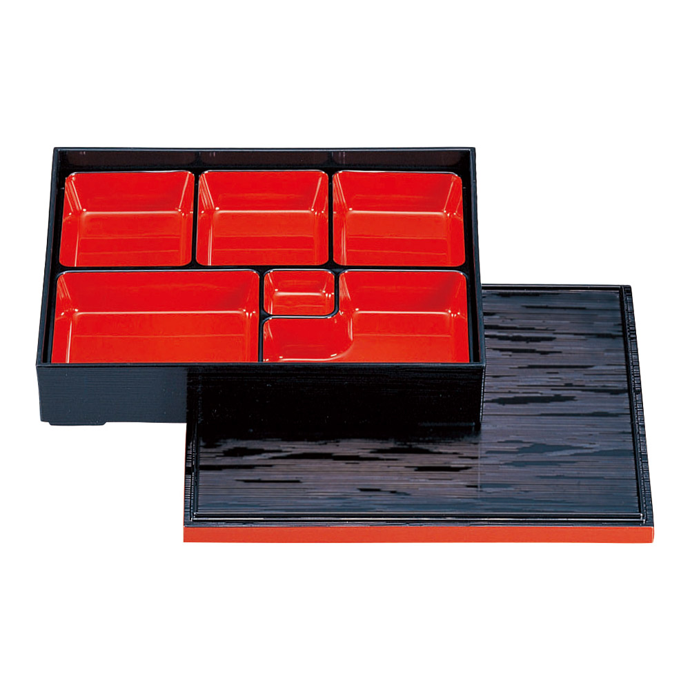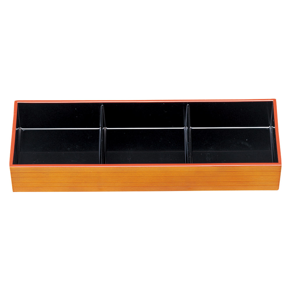 [TA]尺1寸長手ヘギ目松花堂用 6ツ仕切 朱天黒