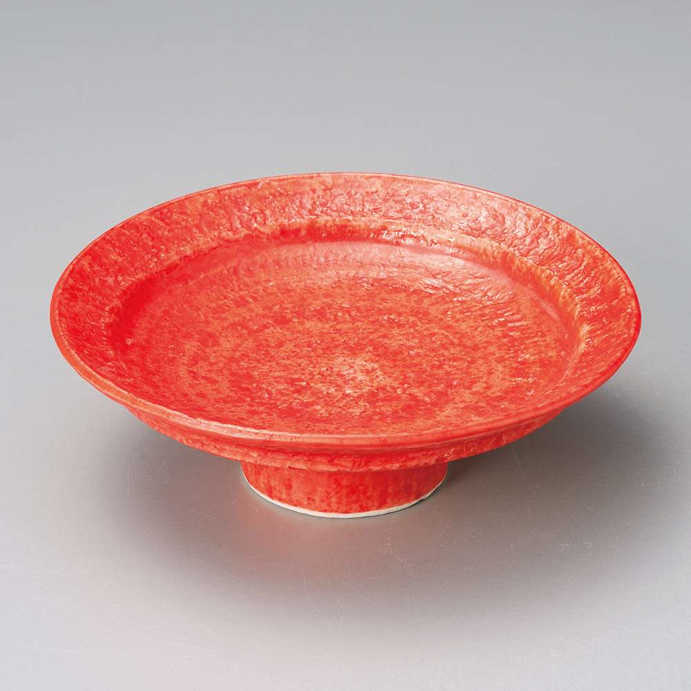 朱赤巻新高台丸皿