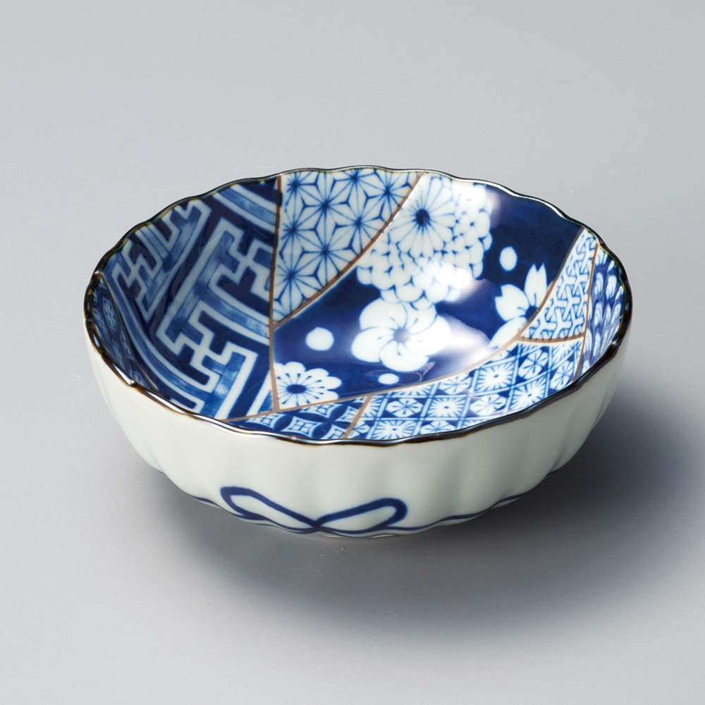 藍友禅菊型4.5鉢