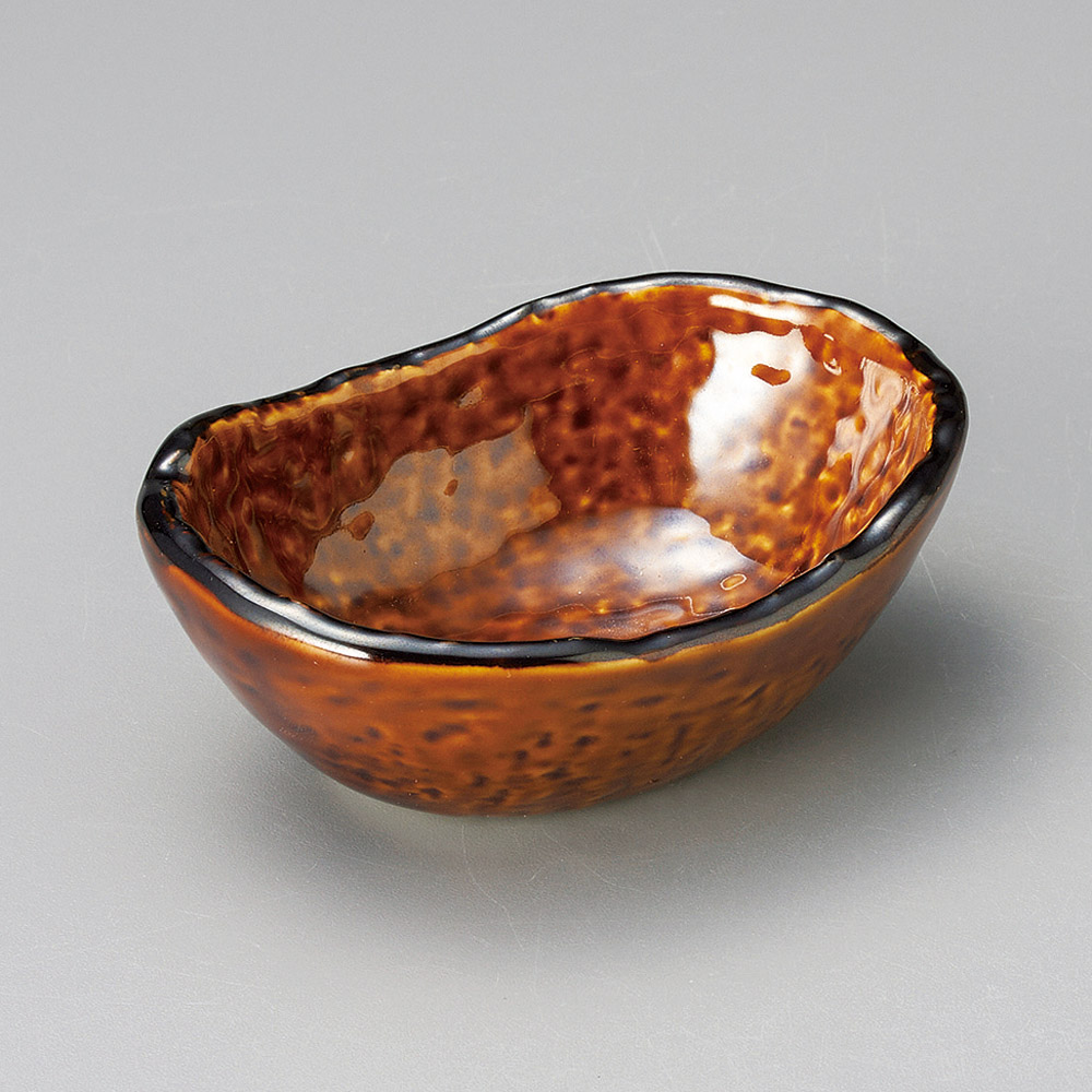 アメ釉楕円小付