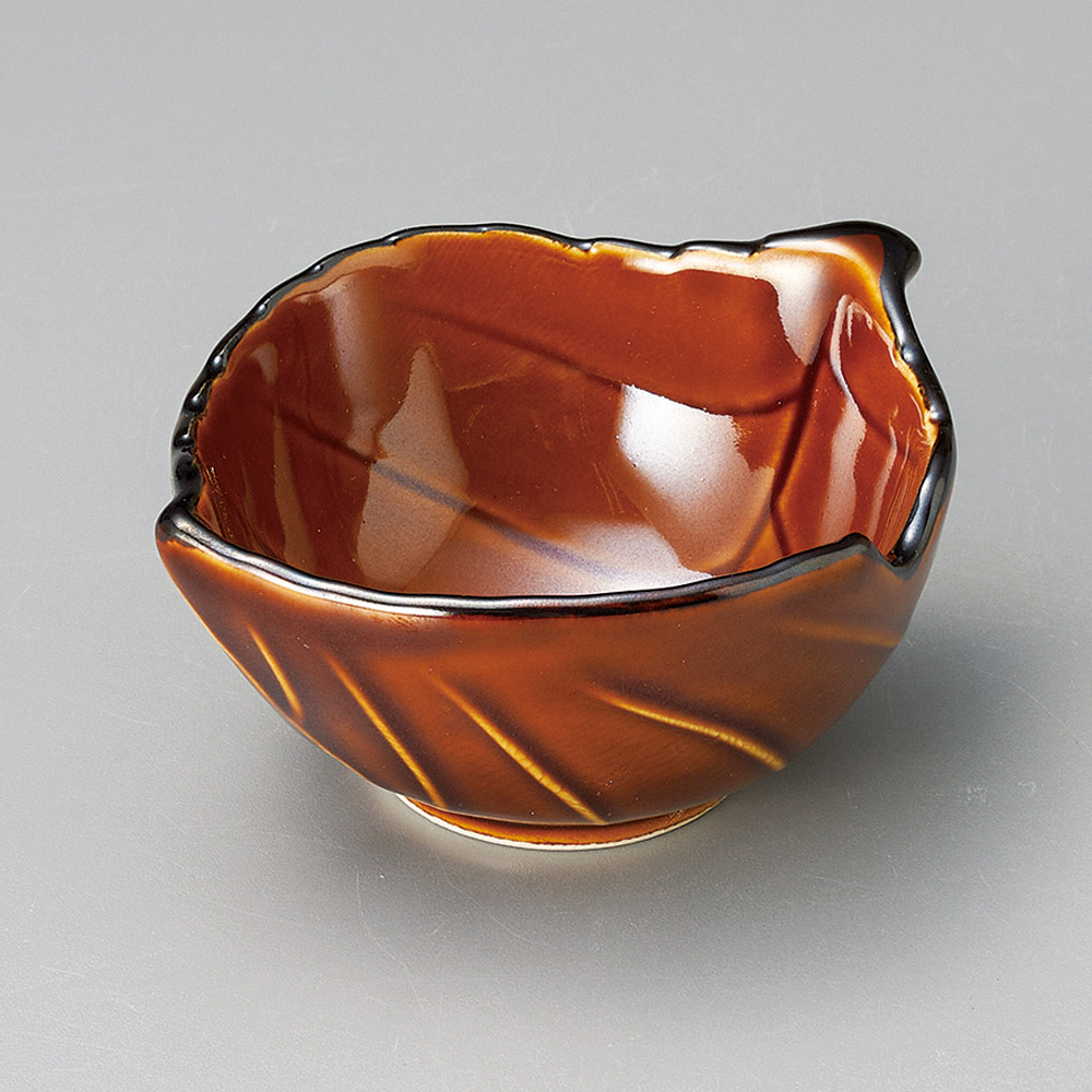 アメ釉木の葉小付