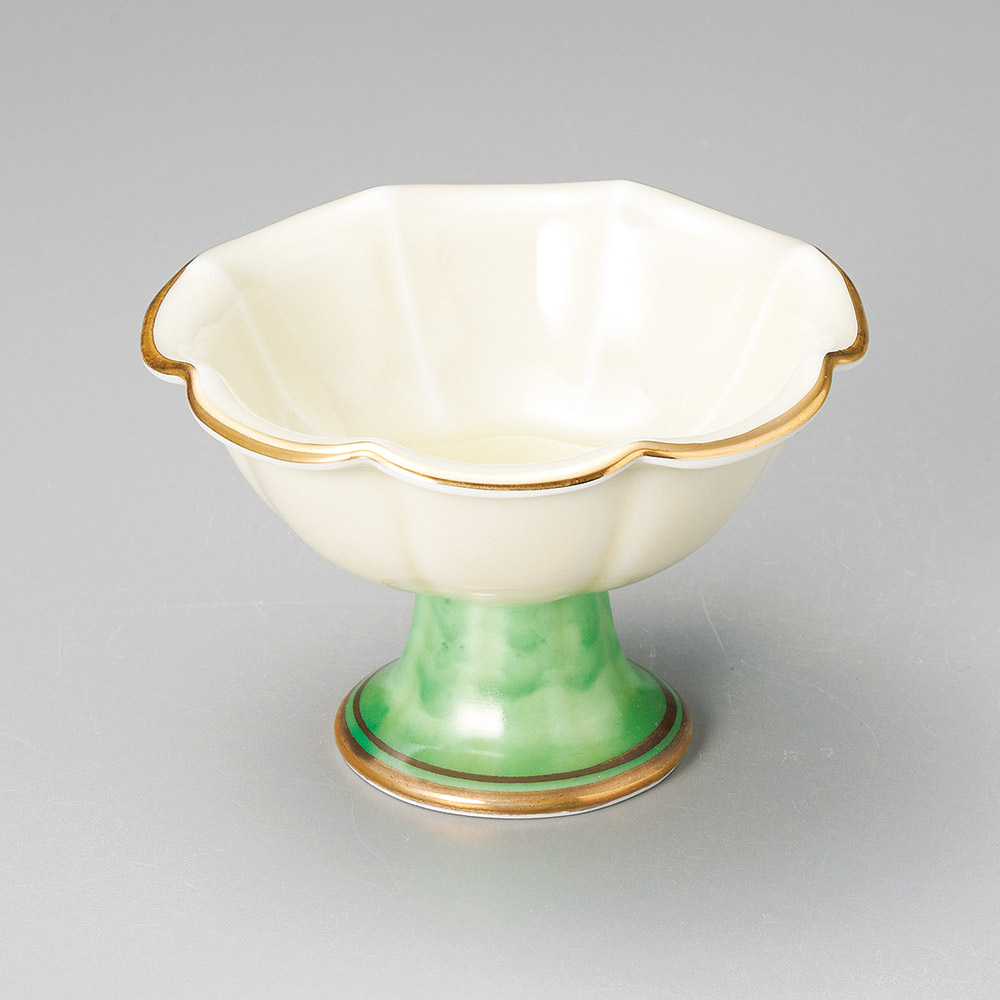 黄釉グリーン流葉型千代久