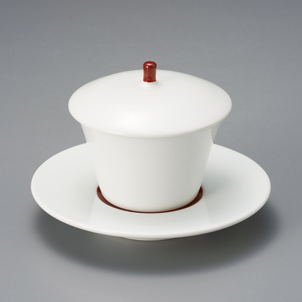 赤巻小蓋物(皿付)