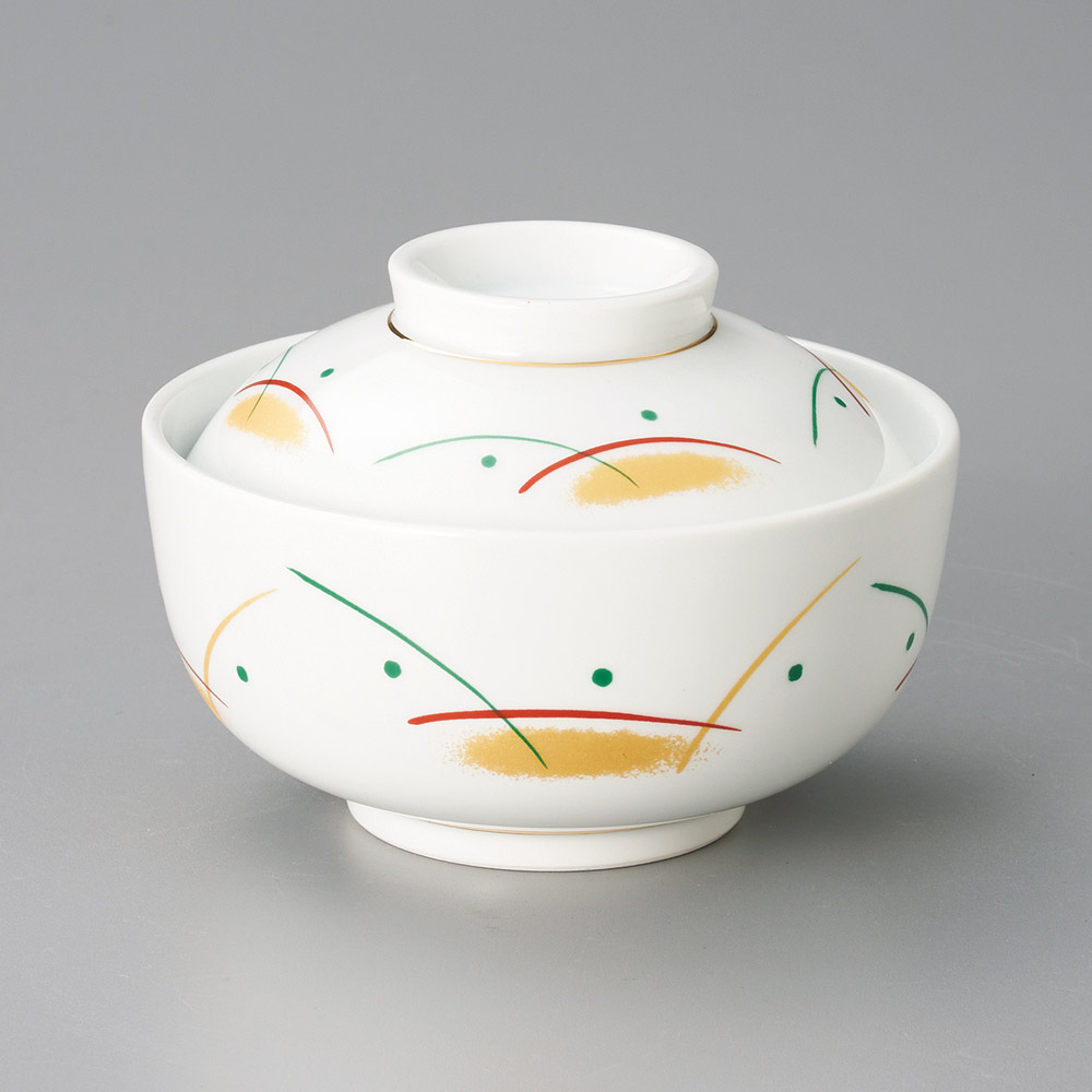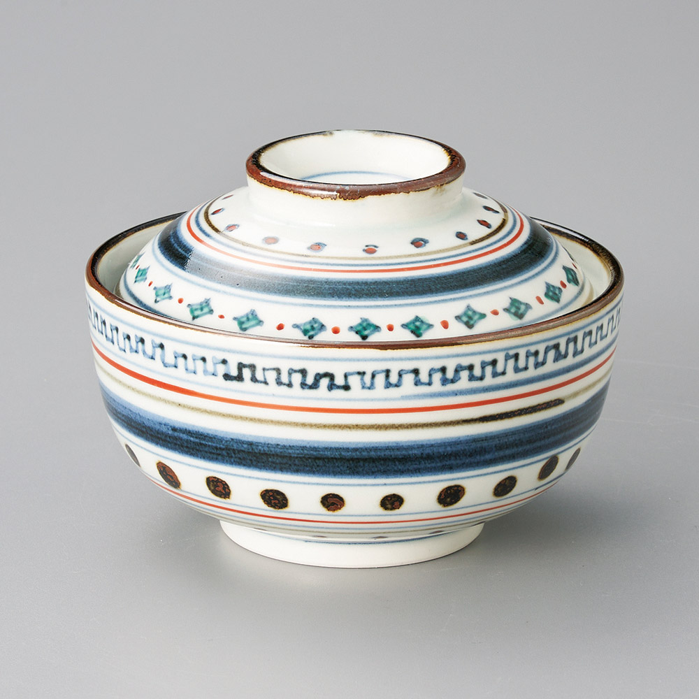 色絵帯紋円菓子碗(手描き) (強化)