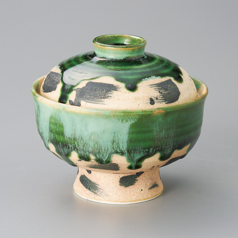 織部サビ刷毛絵高台蓋物