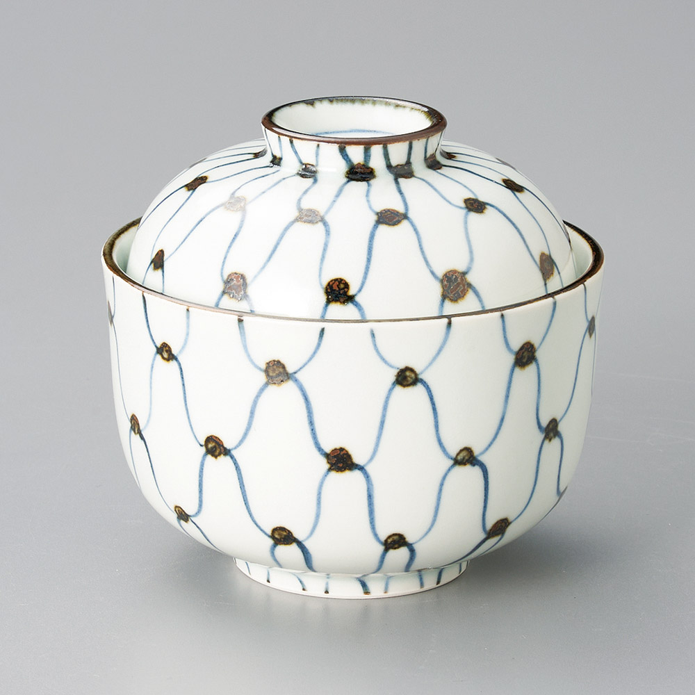 染付網目紋小蓋物(手描き)