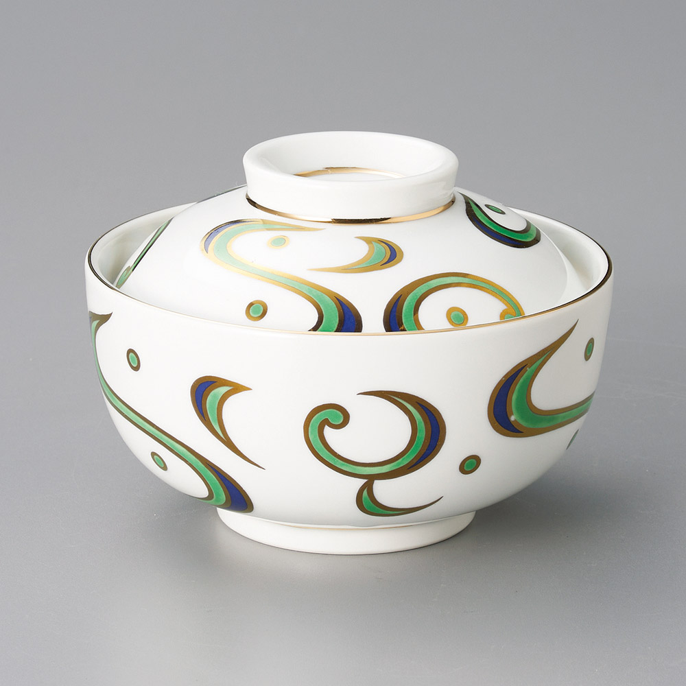 金緑唐草円菓子碗 (強化)