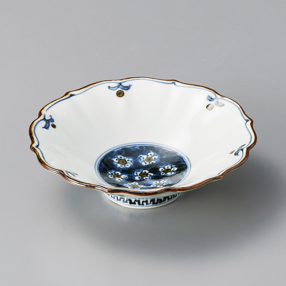 錆染付梅小紋花型向付(手描き) (強化)