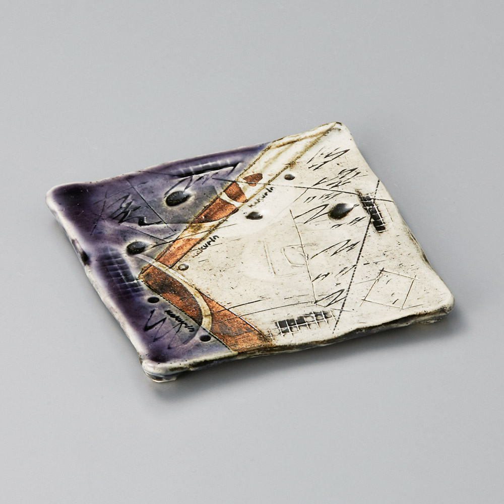 黒窯変掛け分けソギ5.0角皿(信楽焼)