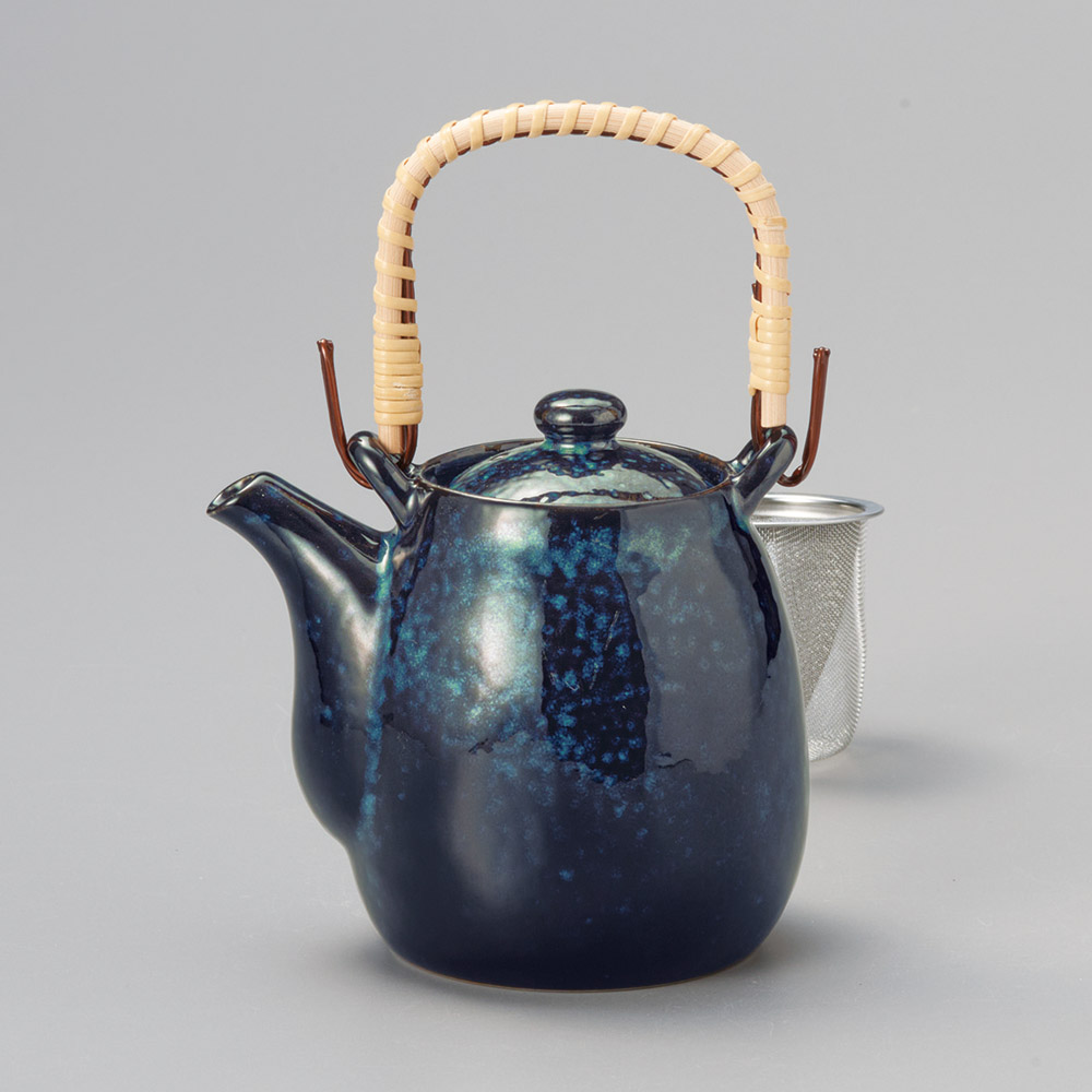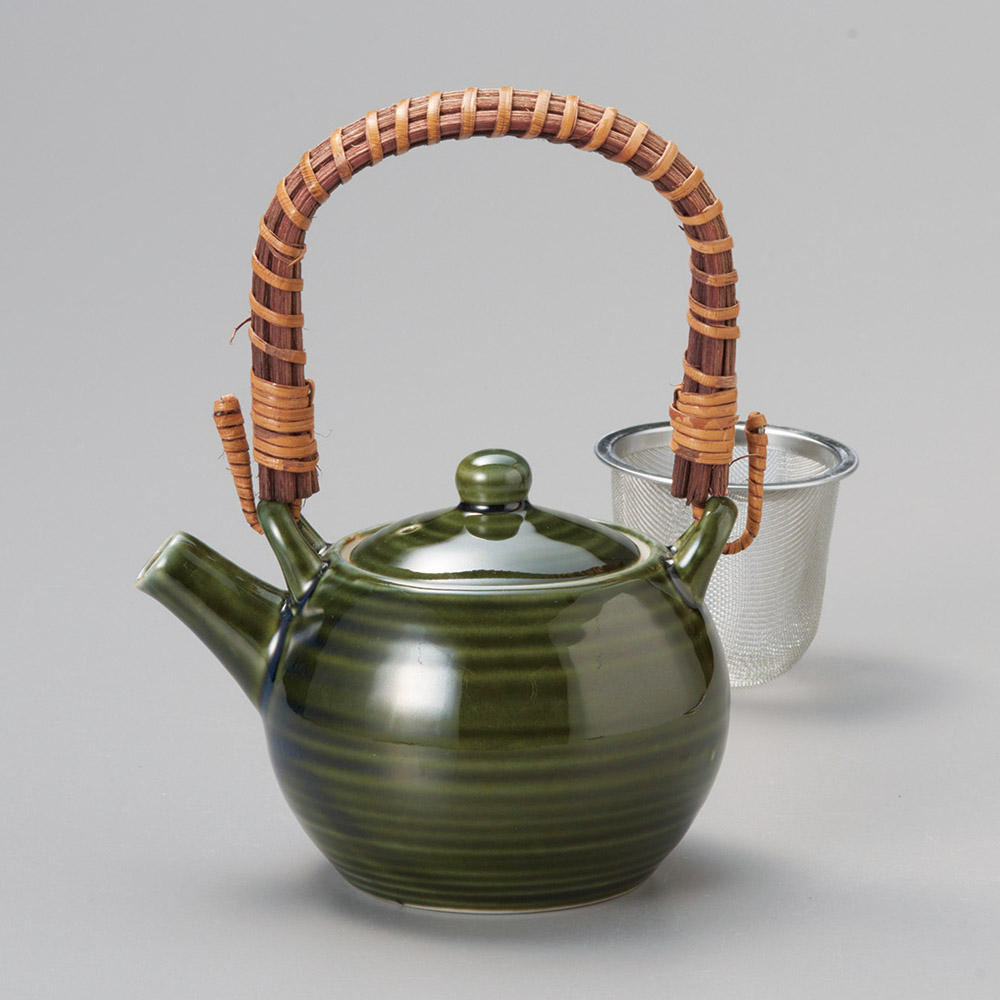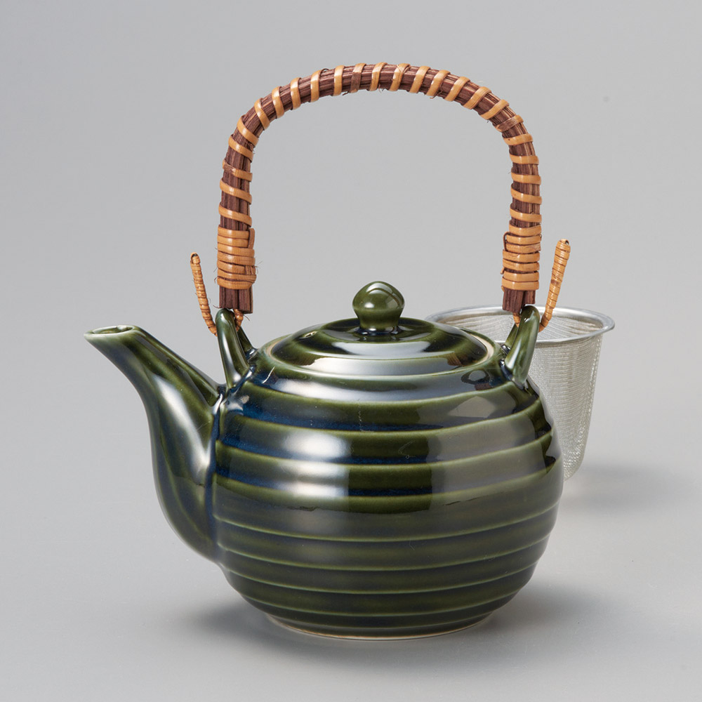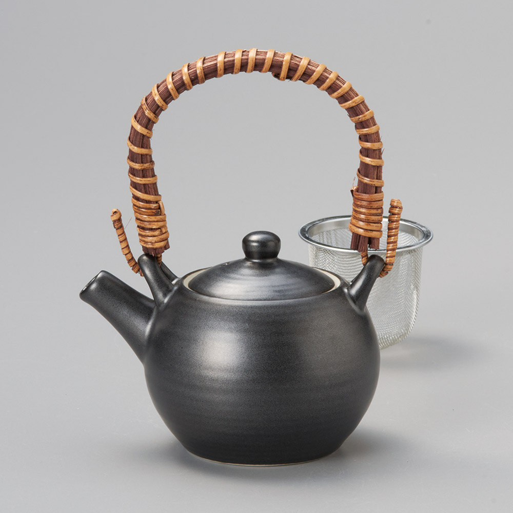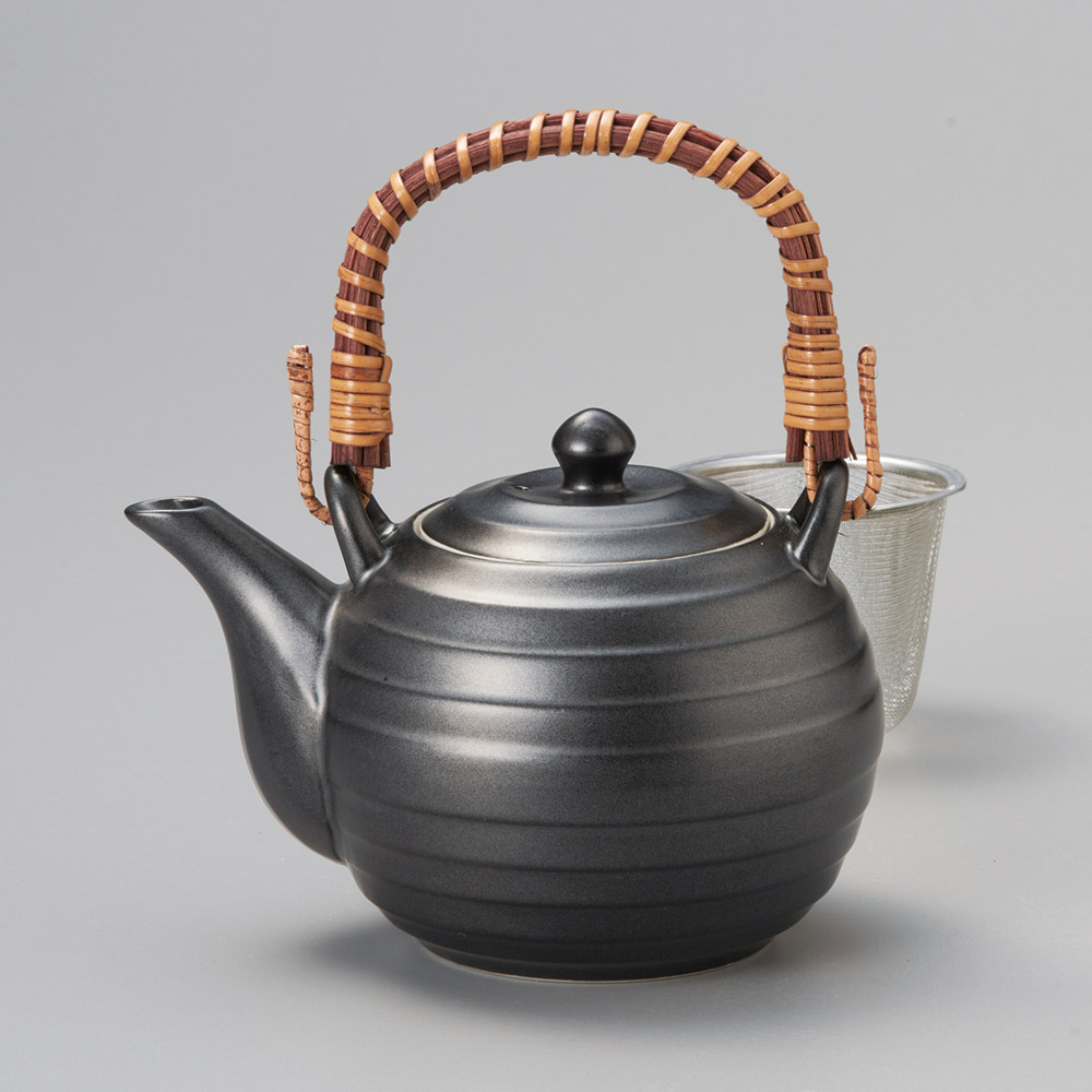 いぶし銀彩スリム土瓶(カゴアミ付)