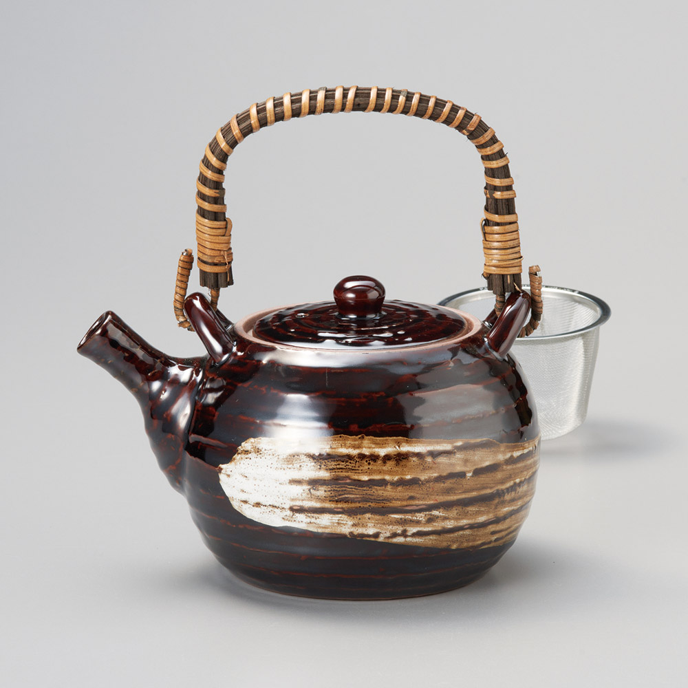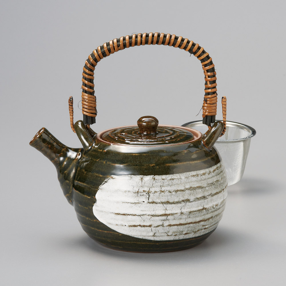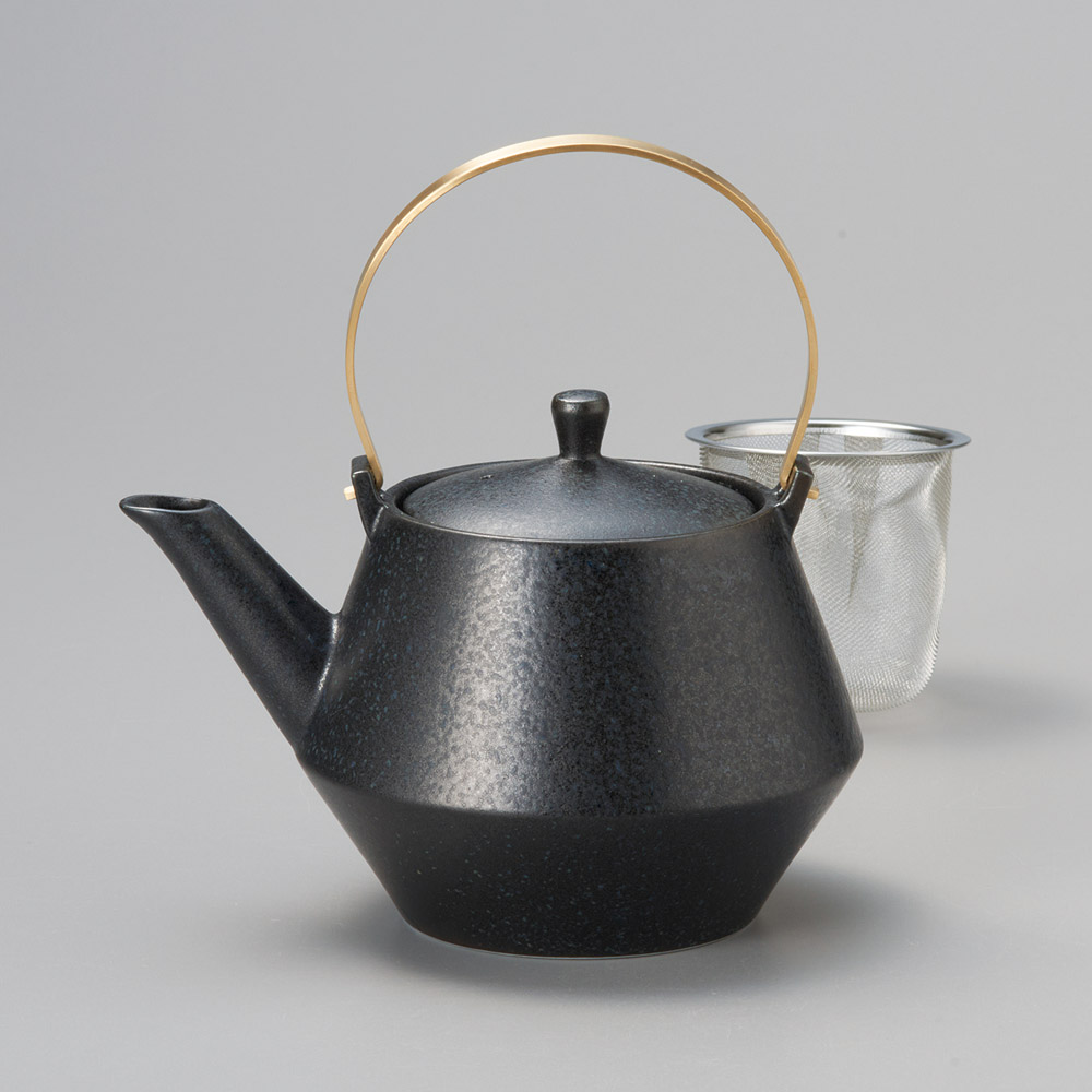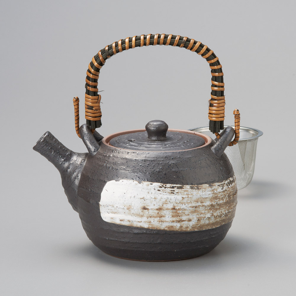 黒結晶白刷毛土瓶 ステンレス茶コシ付