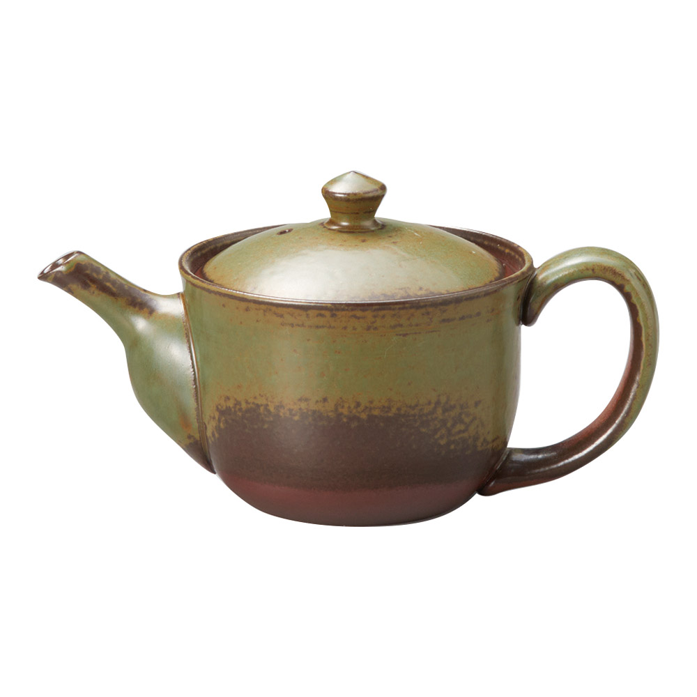 万古急須2.0花みずき織部(カゴ網付)(萬古焼)