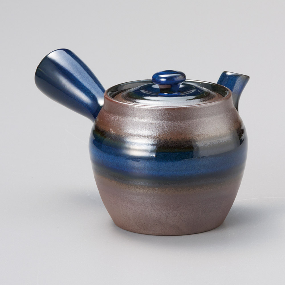 万古急須2.0未来型青(カゴ網付)(萬古焼)