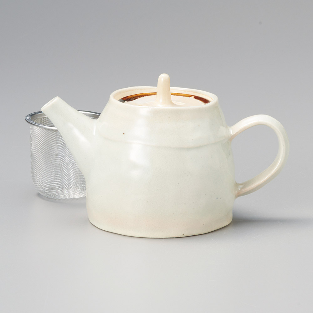 万古急須2.0平形白ハケメ(底網)(萬古焼)