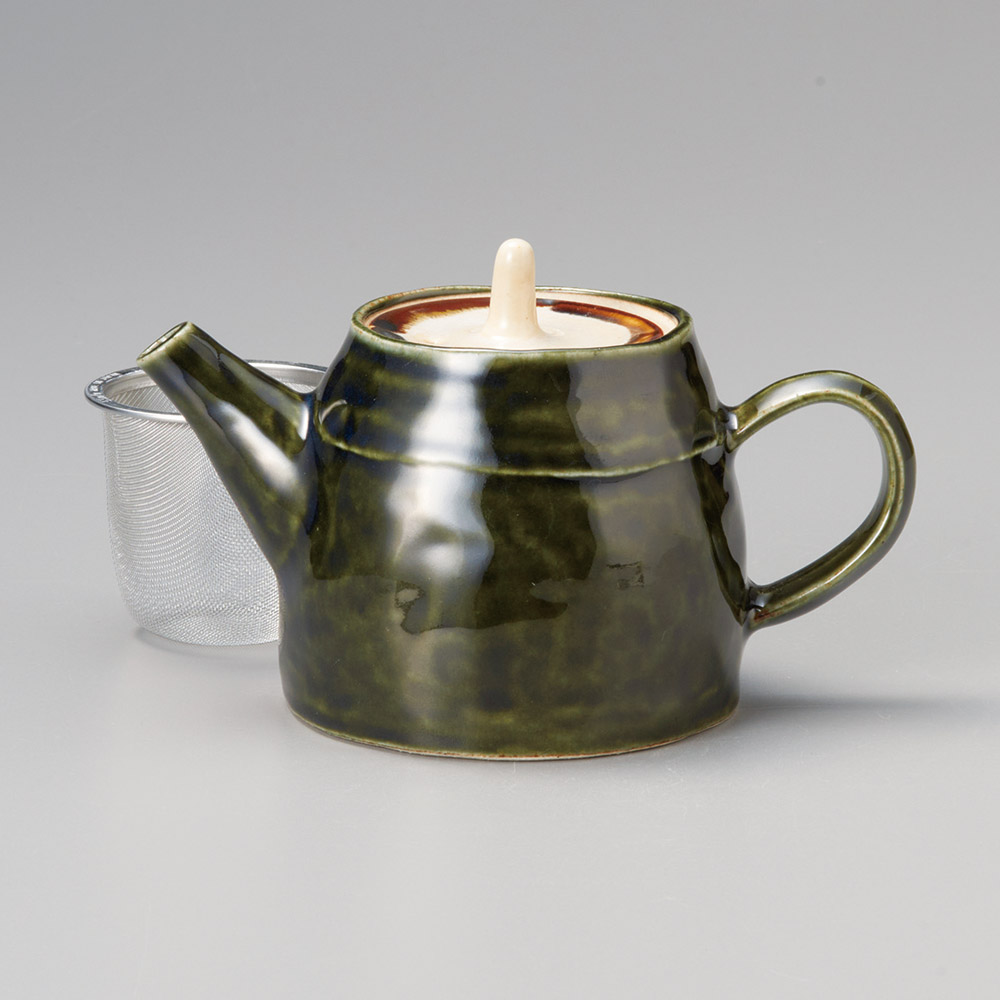 万古急須2.0千筋オリベ巻(丸網)(萬古焼)