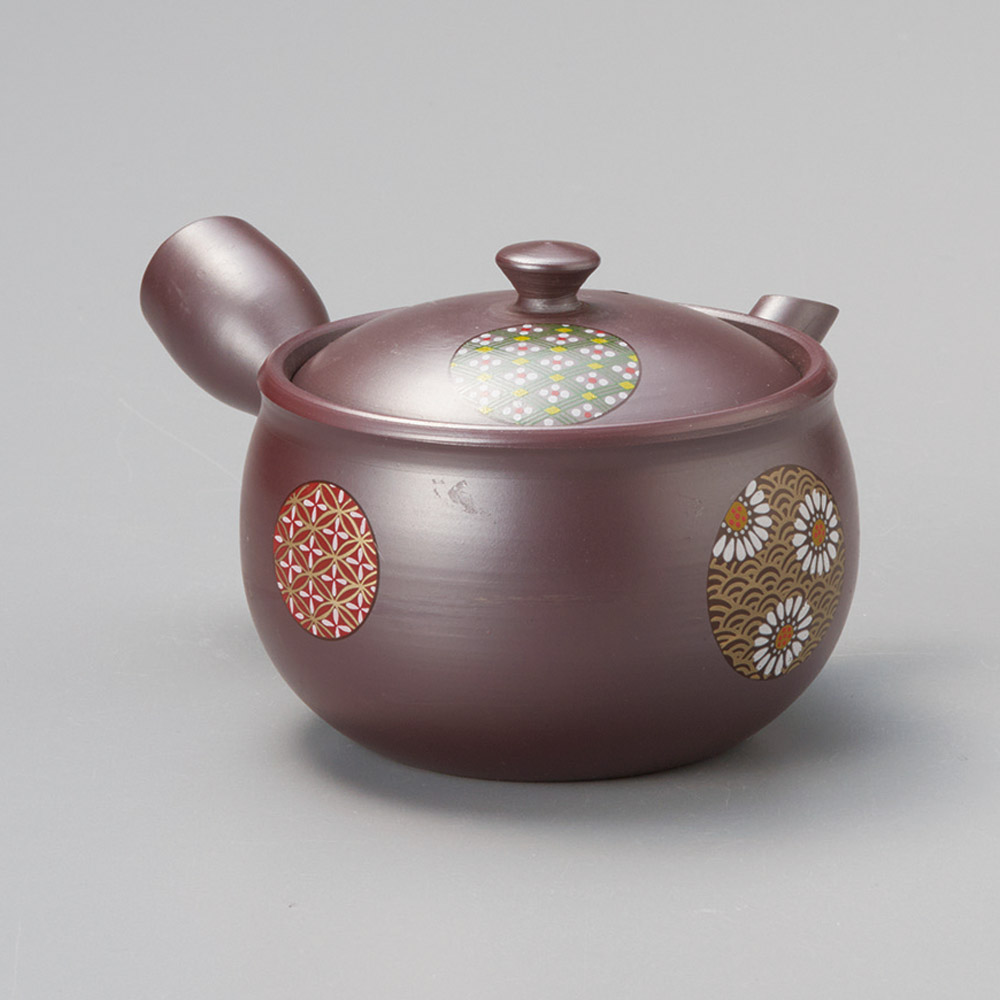 万古急須2.0碗形友禅(まるっと網)(萬古焼)