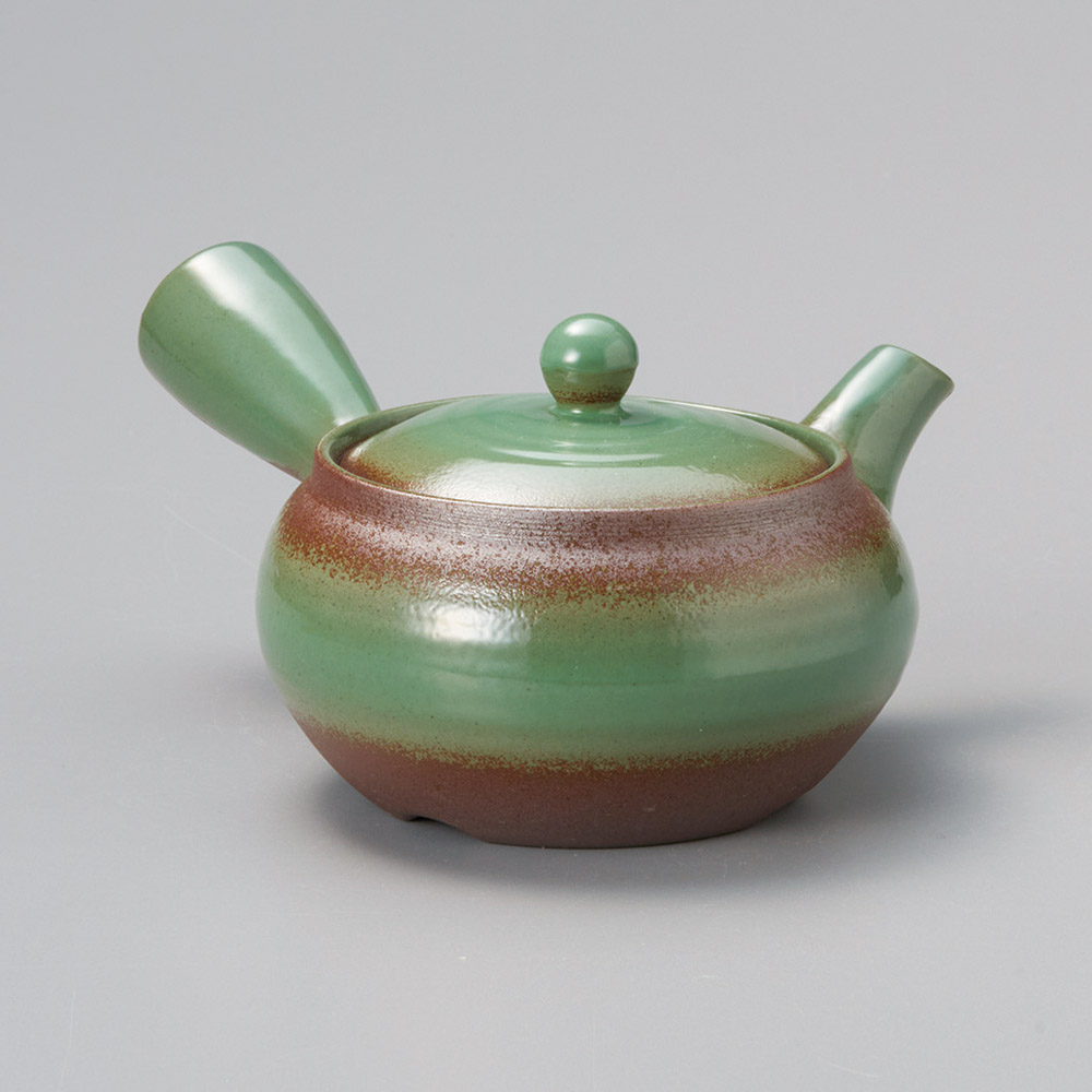 万古急須2.0平形青緑巻(底網)(萬古焼)