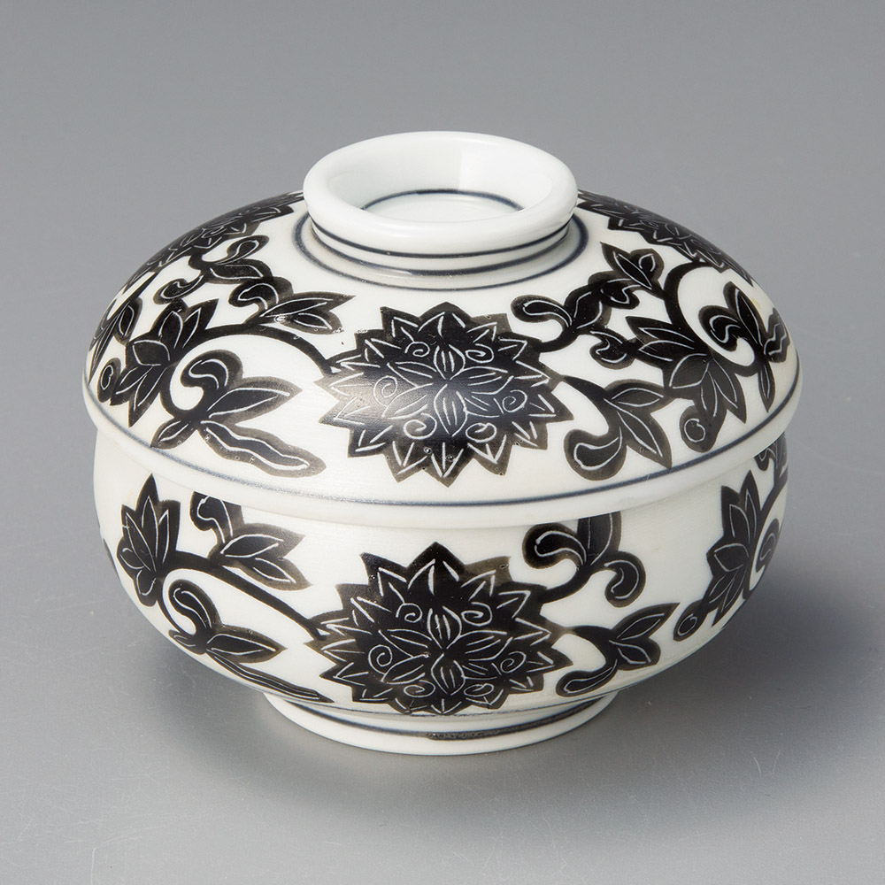 黒南蛮ブロンズ刷毛巻夏目むし碗(有田焼)