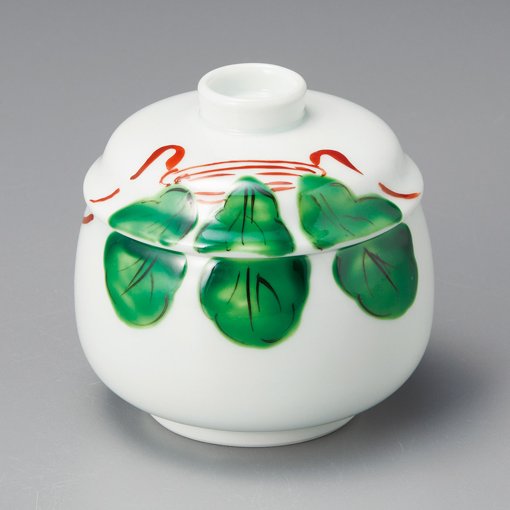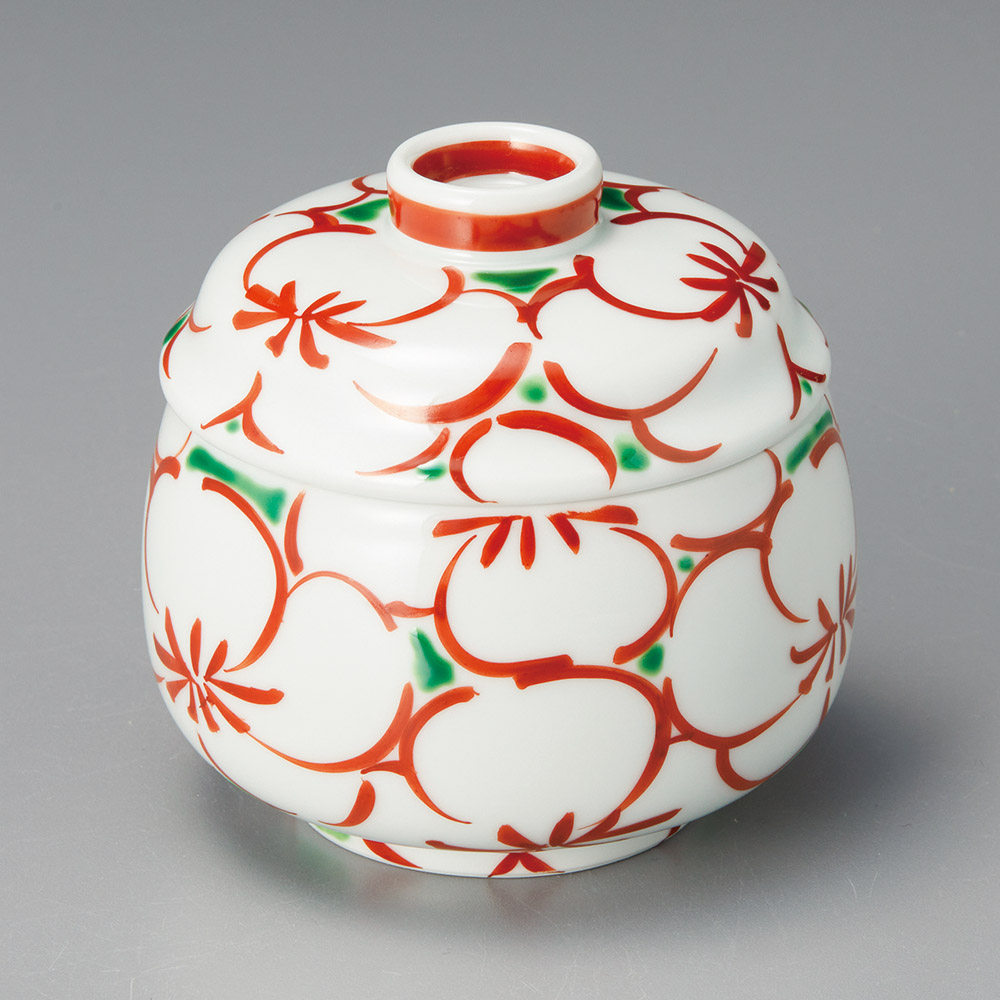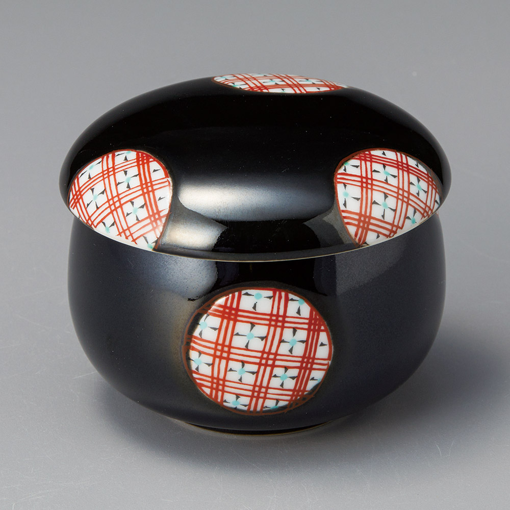黒釉赤地紋丸紋小むし碗(有田焼)