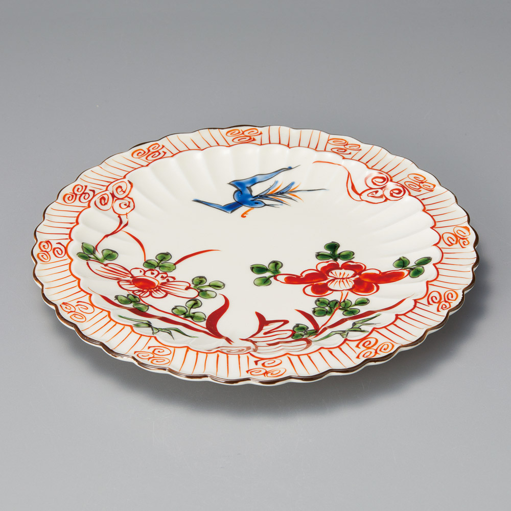 万歴花鳥内菊彫六寸輪皿(有田焼)