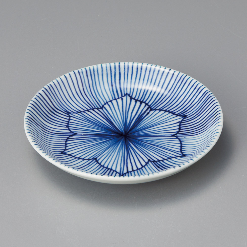 内外菊割(青)菊型三つ足珍味入(有田焼)