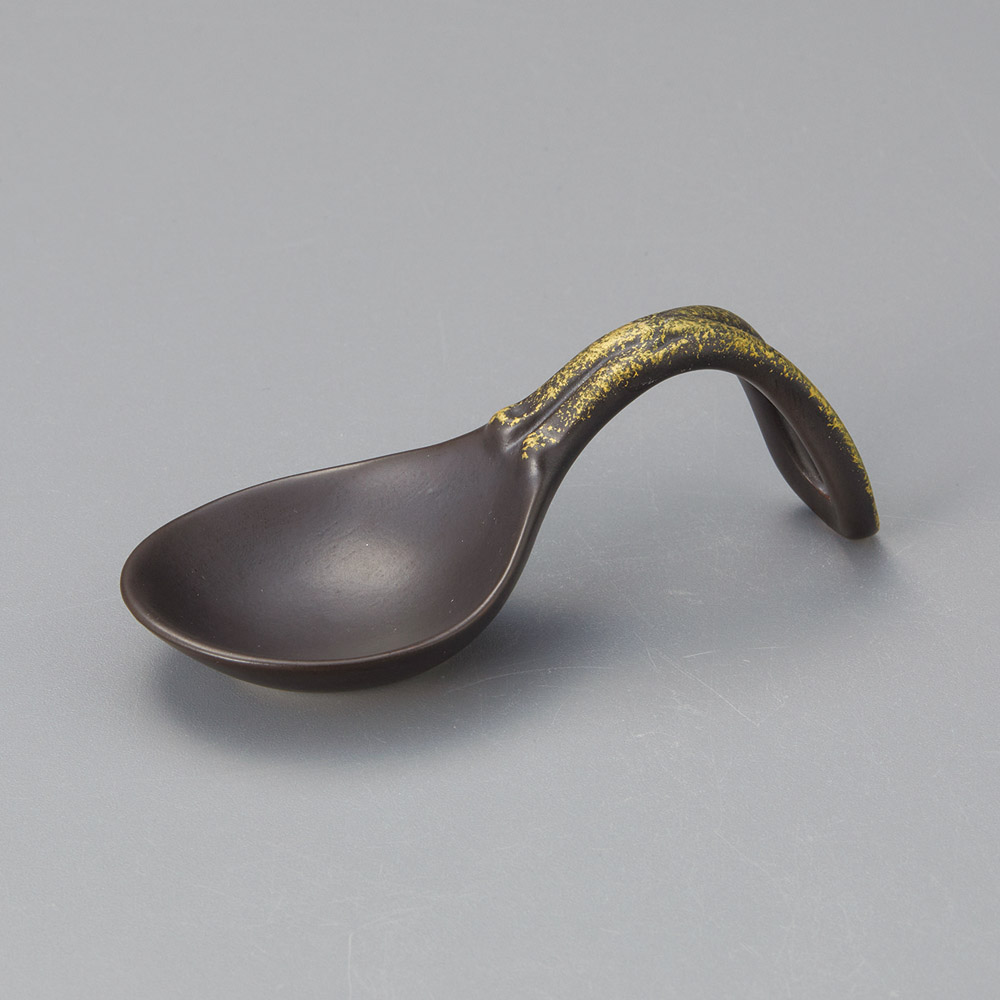 花黒マット雲母金叩スプーン珍味(有田焼)