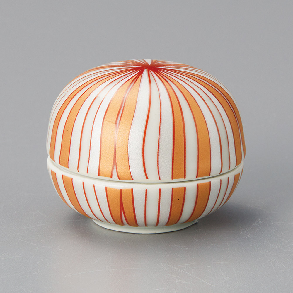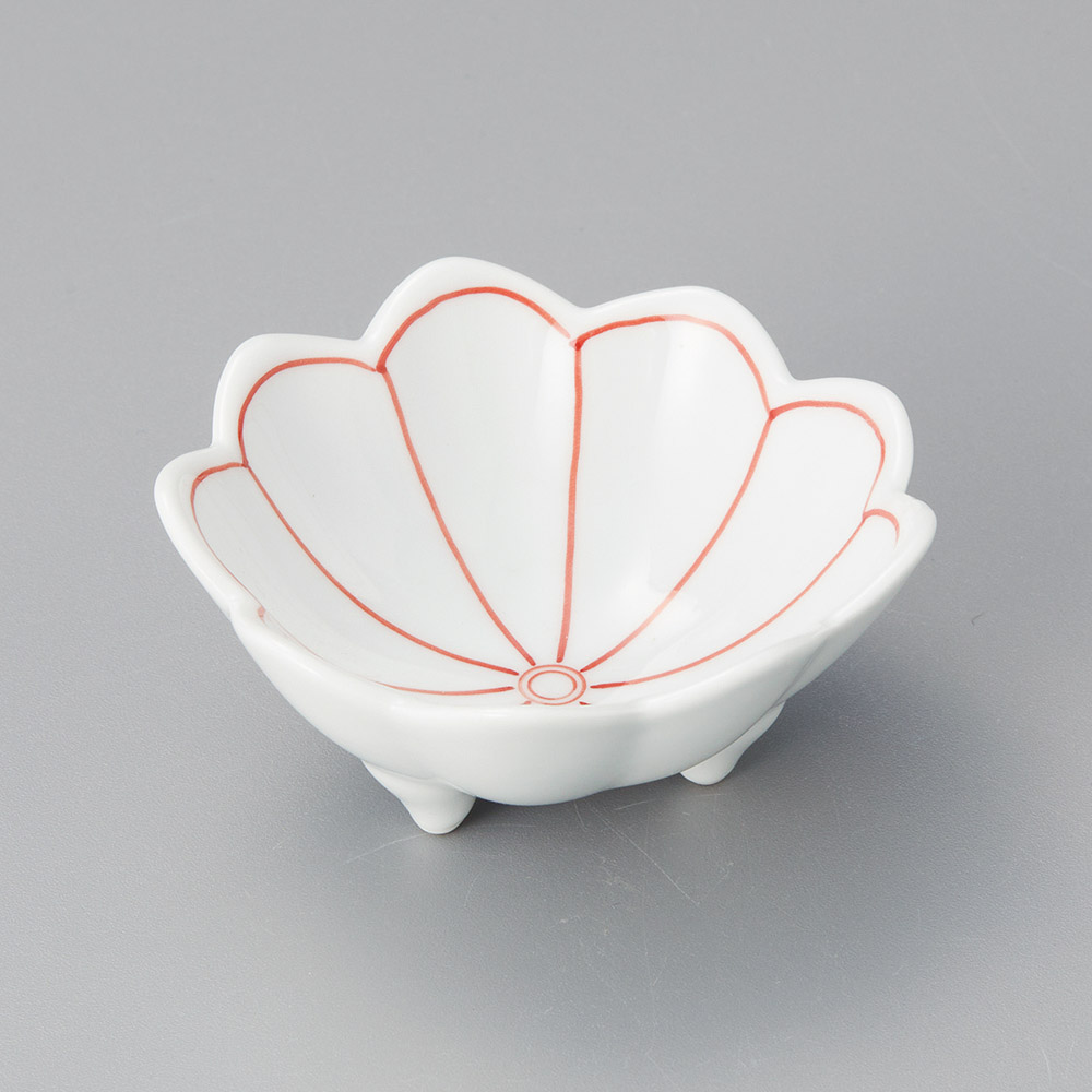 内菊割(赤)菊型三つ足珍味入(有田焼)