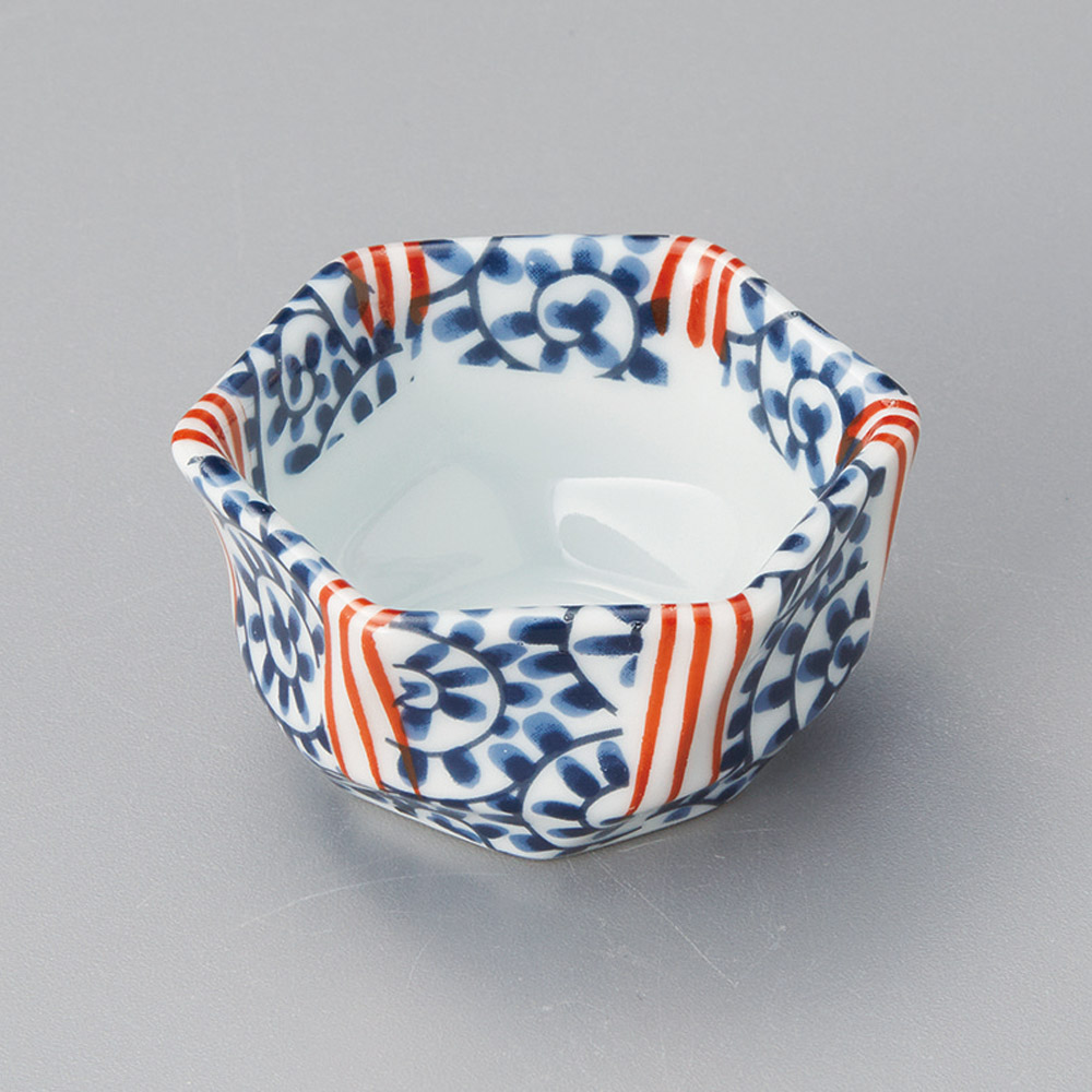 蛸唐草朱3本筋六角ネジリ珍味(有田焼)