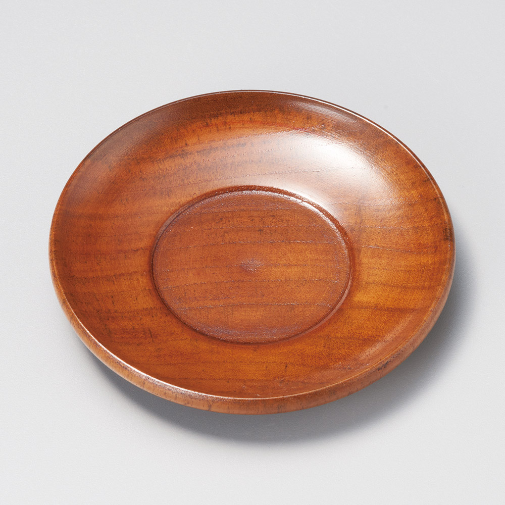 [A]4寸木目茶托 総溜