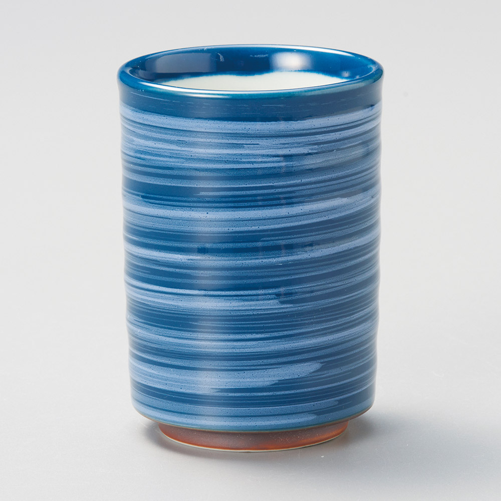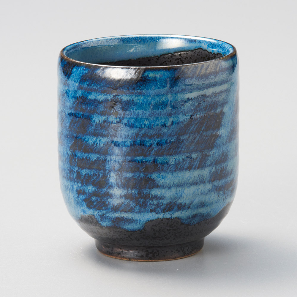黒水晶流し波削ぎ寿司湯呑 (土物)